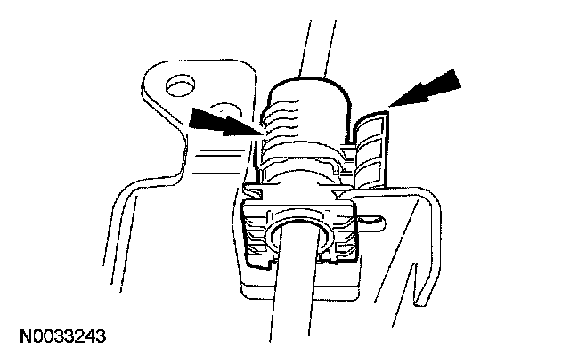 10. Remove the 2 nuts from the rubber grommet at the bulkhead and remove the cable from the retainer.
