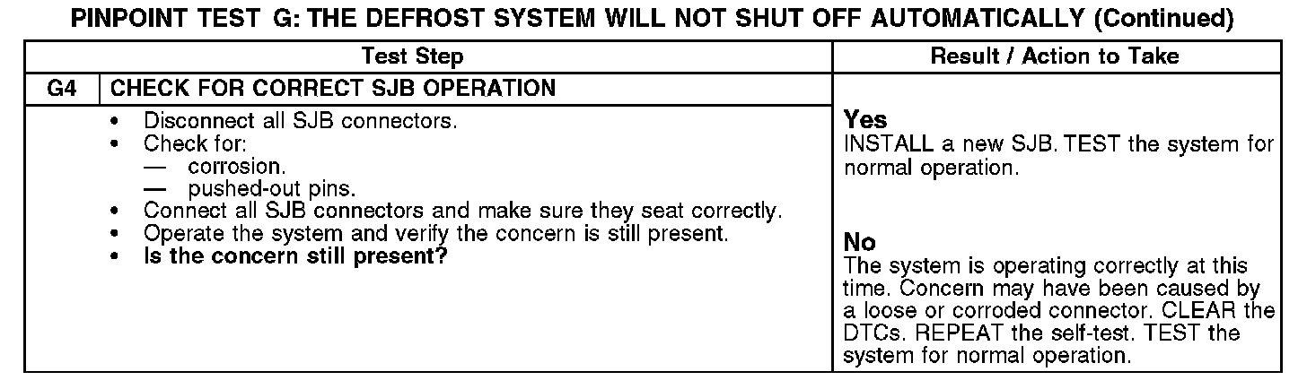 PINPOINT TEST G: THE DEFROST SYSTEM WILL NOT SHUT OFF AUTOMATICALLYG1-G3: