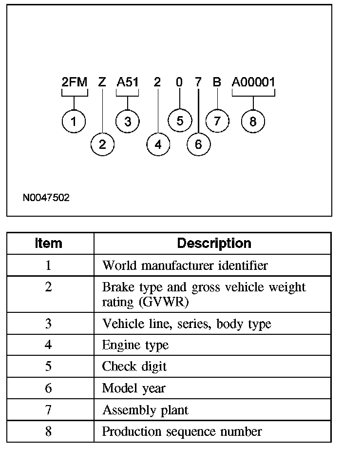 VIN positions 5 through 7 indicate the vehicle line and series.
