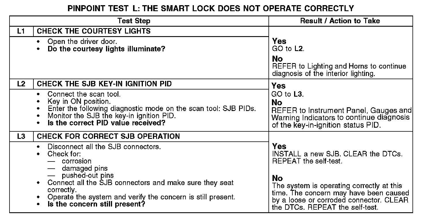 PINPOINT TEST L: THE SMART LOCK DOES NOT OPERATE CORRECTLYL1-L3: