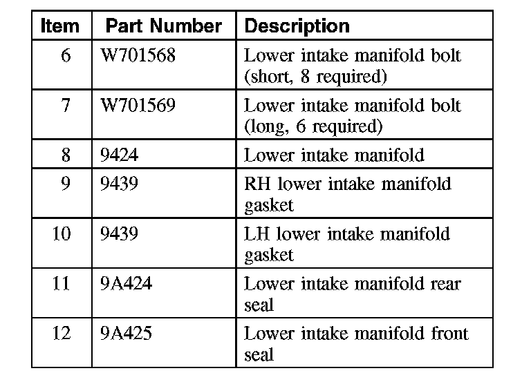 9. Remove and discard the front and rear lower intake manifold seals.