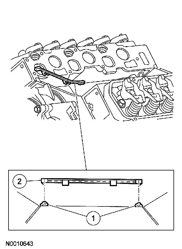 CAUTION: During engine repair procedures, cleanliness is extremely important. Any foreign material, including any material created while cleaning gasket surfaces, that enters the oil passages, coolant passages or the oil pan, can cause engine failure.