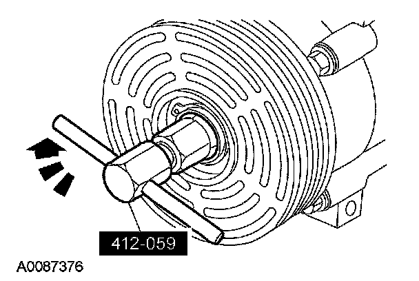 4. Push the shaft seal onto the A/C compressor shaft with the special tool until seated.
