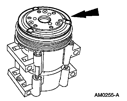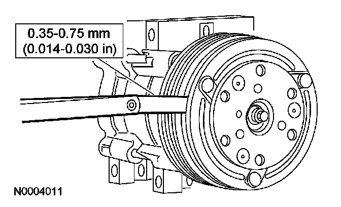 10. Measure and adjust the clutch air gap by removing or adding A/C clutch hub spacers.