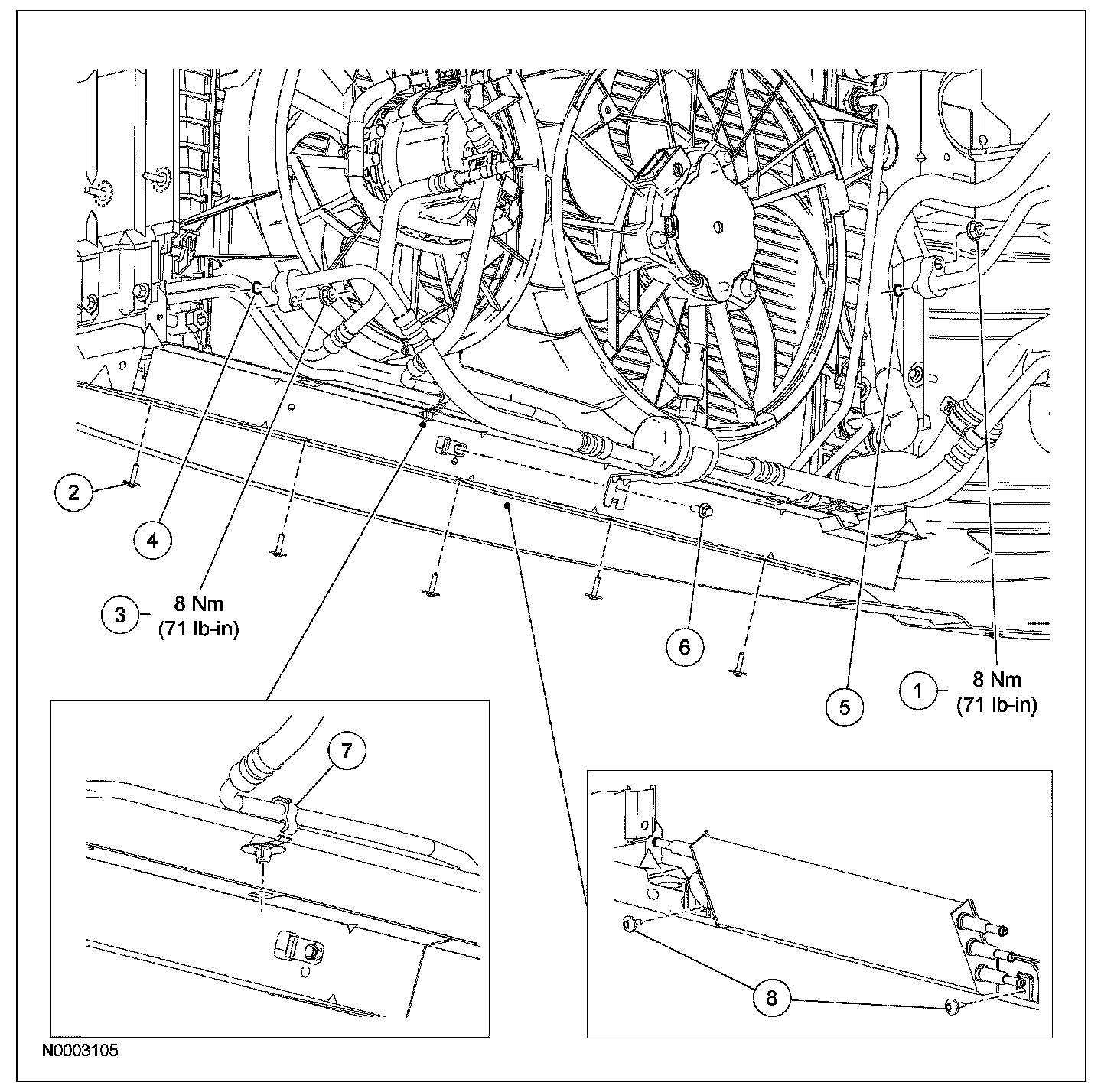 NOTE: Installation of a new suction accumulator is not required when repairing the air conditioning system, except when there is physical evidence of system contamination from a failed A/C compressor or damage to the suction accumulator.