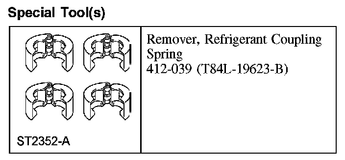 3. CAUTION: Do not use a screwdriver or similar tool to remove the A/C tube lock coupling spring; this can cause axial scratches across the O-ring seal grooves resulting in refrigerant leaks.