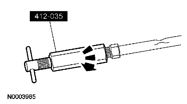 7. If the evaporator core orifice is intact, engage the special tool. Hold the T-handle stationary while rotating the tool body to remove the evaporator core orifice.