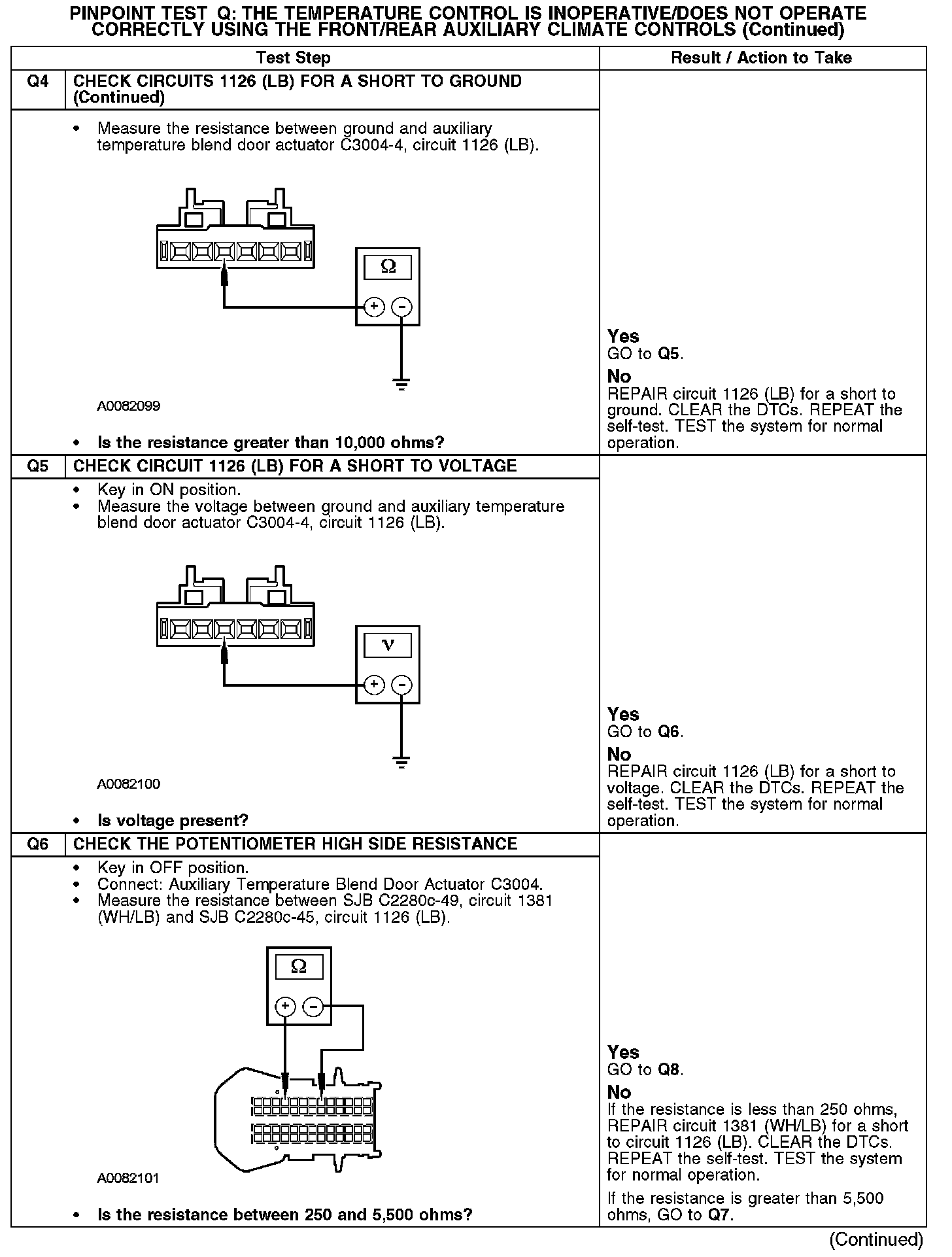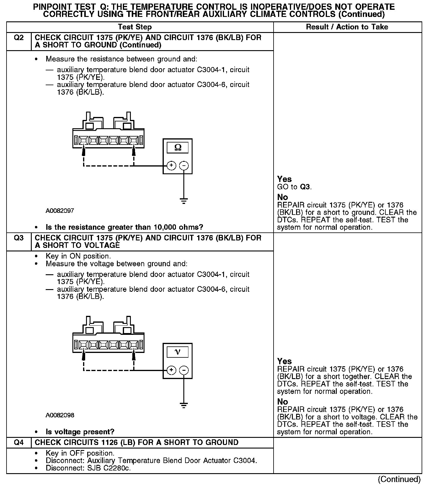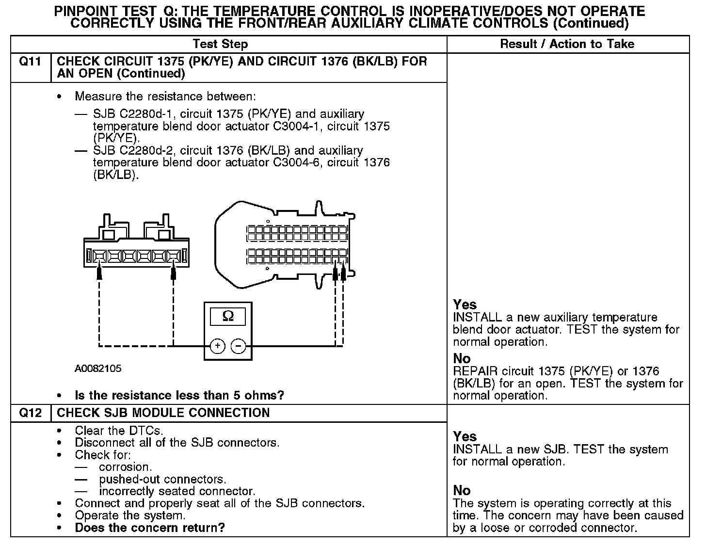 Test Q: The Temperature Control Is Inoperative/Does Not Operate Correctly Using The Front/Rear Auxiliary Climate Controls