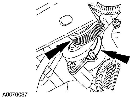 - Rotate the accessory drive belt tensioner counterclockwise until the spring clip releases.
