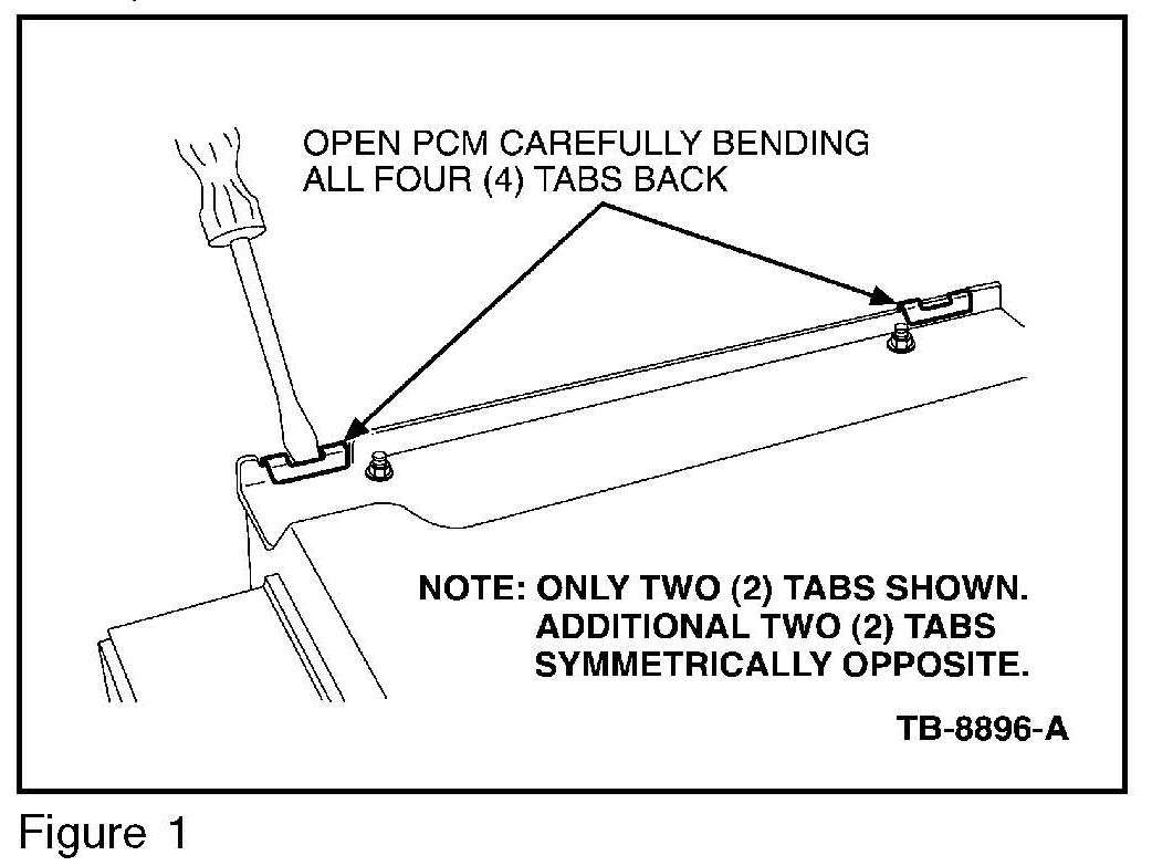 2. Remove the PCM cover by carefully bending back the four (4) retaining clips holding the galvanized metal cover to the top plate. (Figure 1)