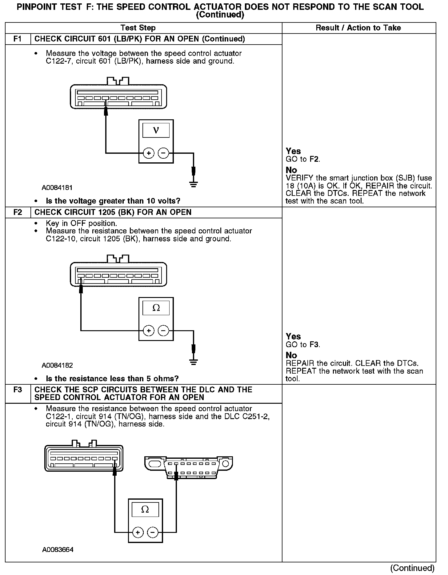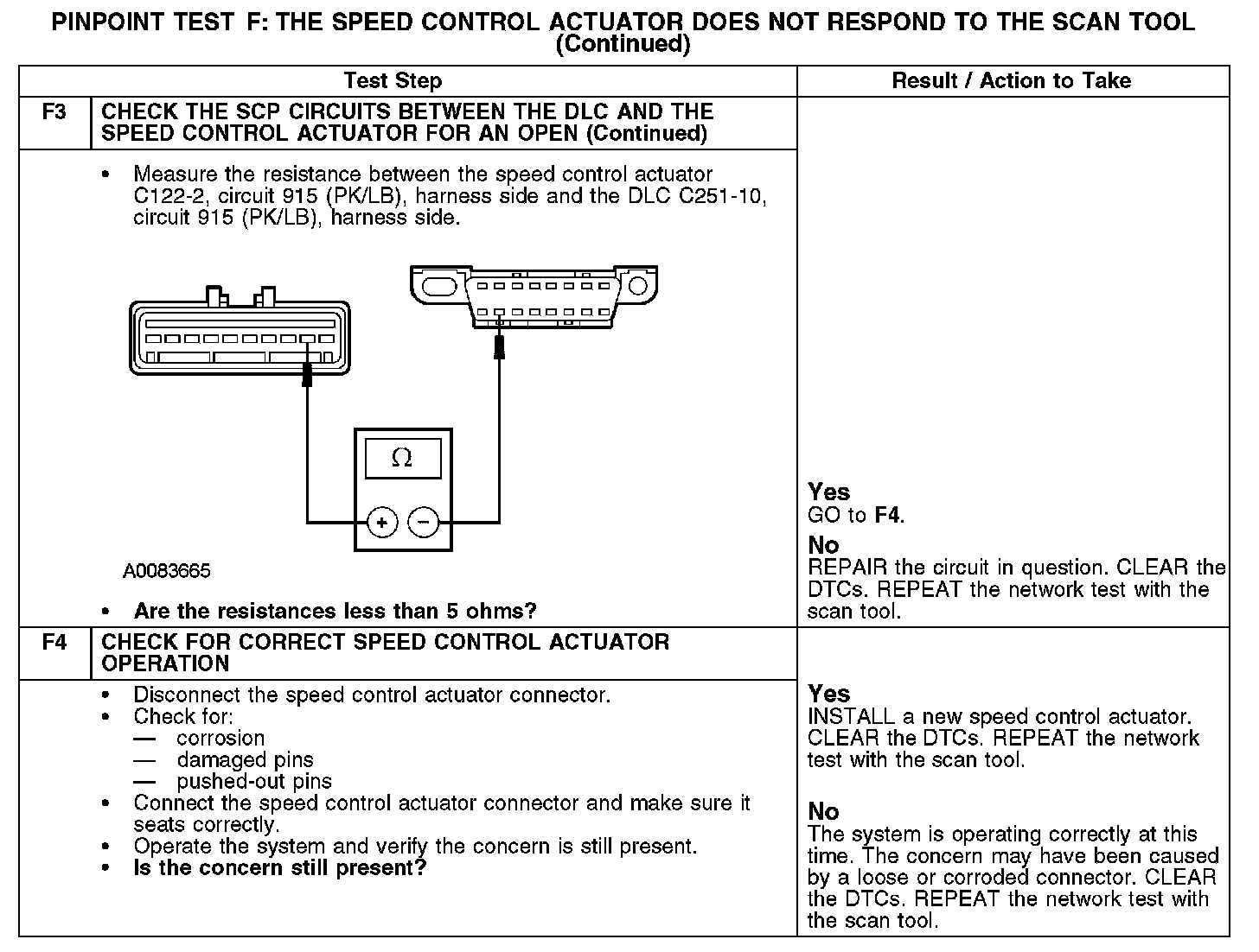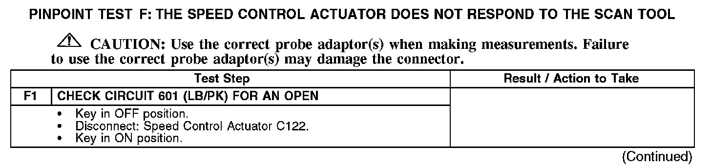 PINPOINT TEST F: THE SPEED CONTROL ACTUATOR DOES NOT RESPOND TO THE SCAN TOOLF1: