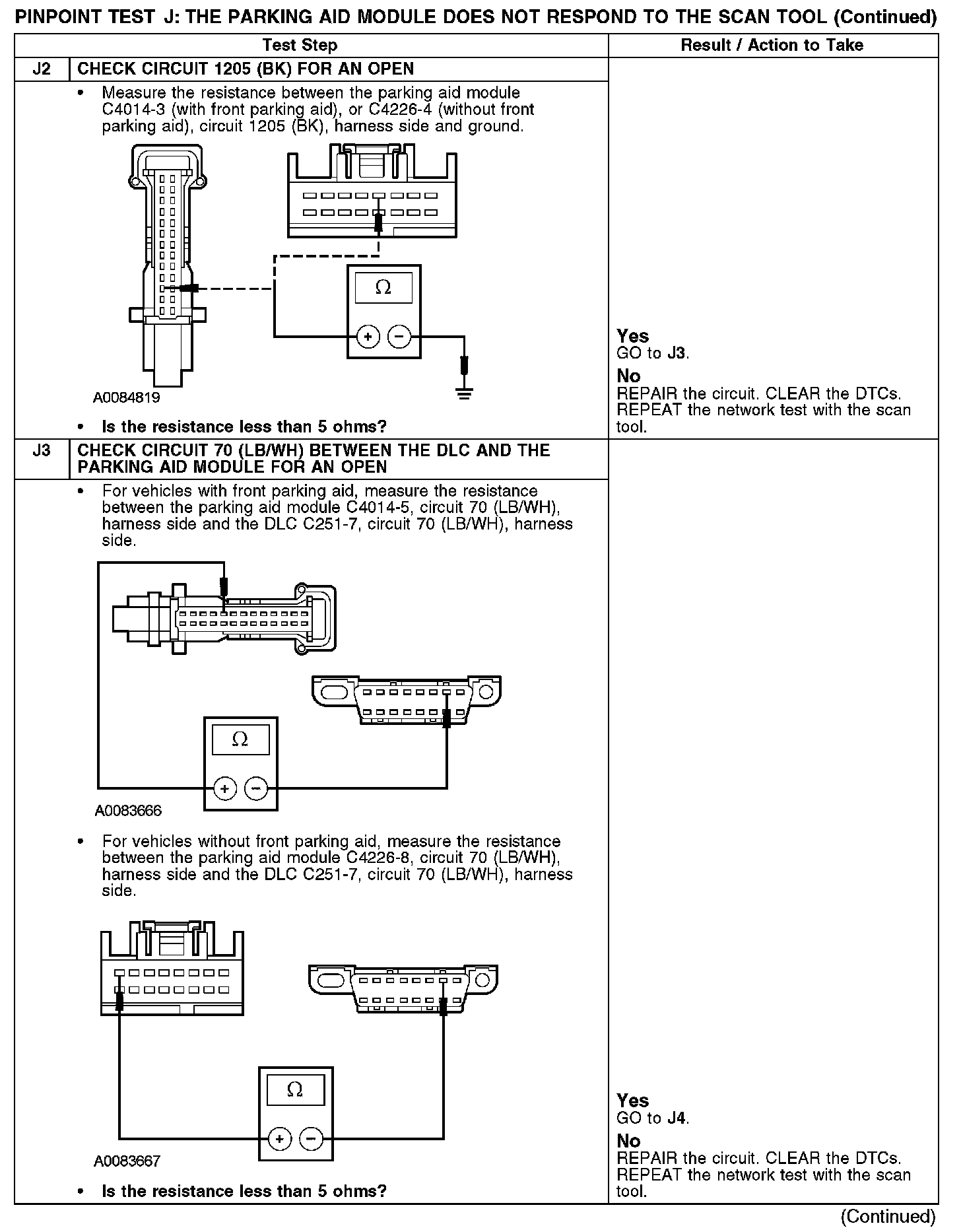 PINPOINT TEST J: THE PARKING AID MODULE DOES NOT RESPOND TO THE SCAN TOOLJ1: