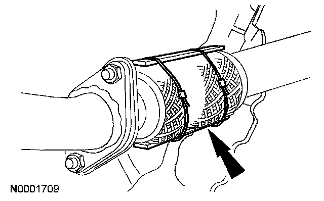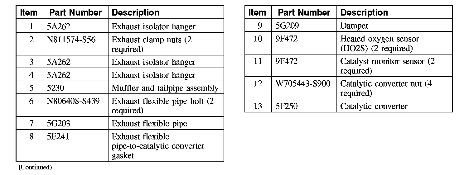 ^ Clean the mating surfaces of the flex pipe and catalytic converter. Use a service bolt(s), N806408-S60, service flag nut(s) W705839-S441, and a new gasket during installation.