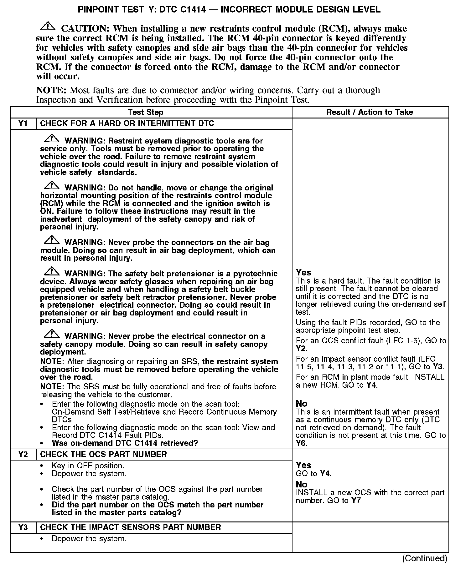 PINPOINT TEST Y: DTC C1414 - INCORRECT MODULE DESIGN LEVELY1-Y3: