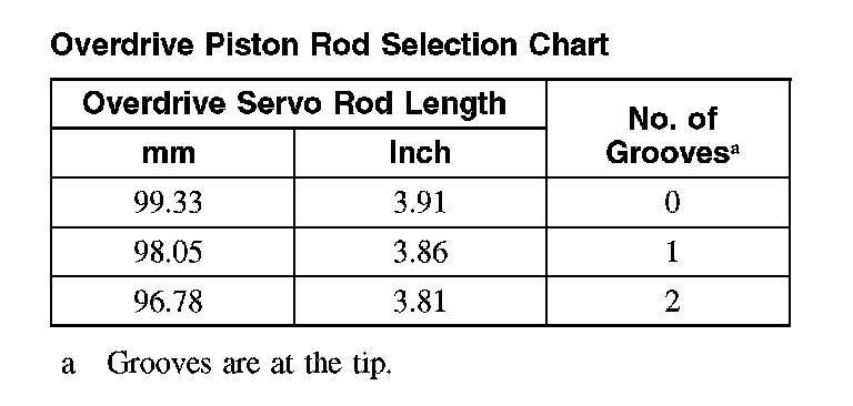 77. Using the special tools, back off the center screw until the piston movement stops and read the dial indicator. The reading should be within specification. If the reading does not match the specification, refer to the overdrive specification chart and determine which overdrive servo rod to use.