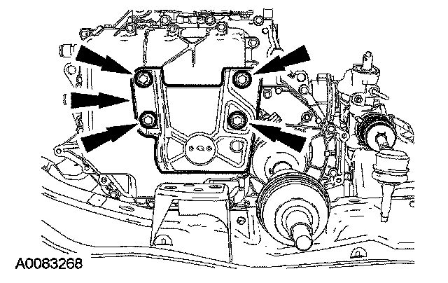 86. CAUTION: Do not use the bolts to draw pump assembly and main control valve body onto the chain cover case. Component damage may occur.