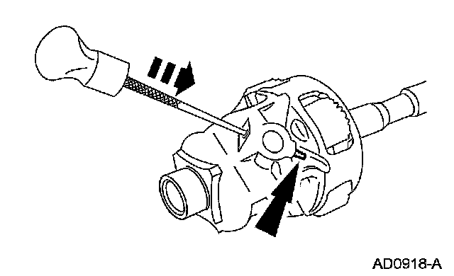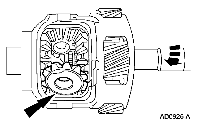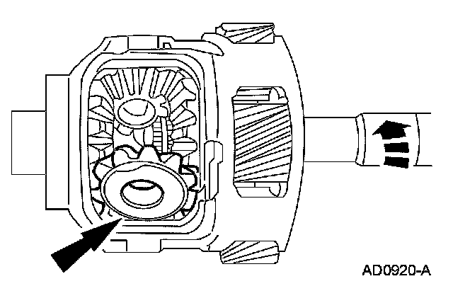 6. Rotate the output shaft and remove the differential pinion gear, and the differential pinion thrust washers.