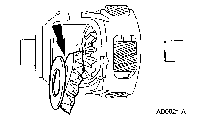 1. Inspect the differential pinion and side gears for looseness, discoloration, cracks or excessive gear wear.