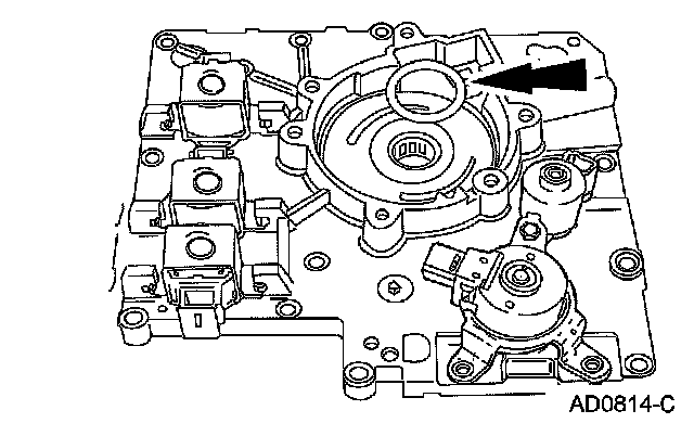 13. CAUTION: Be sure the pump bore area is well cleaned. It is a hidden foreign material trap. Flow from the pump goes into the manual valve circuit, then passes into the EPC circuit. Pump pressure at this point is very high. Any foreign material not cleaned out here will be pumped through the transaxle on the first operation.