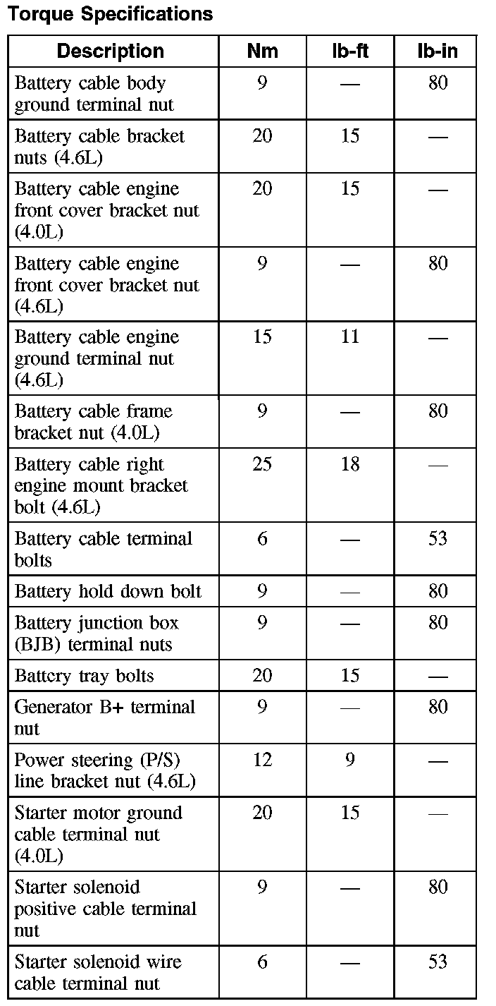 Torque Specifications: