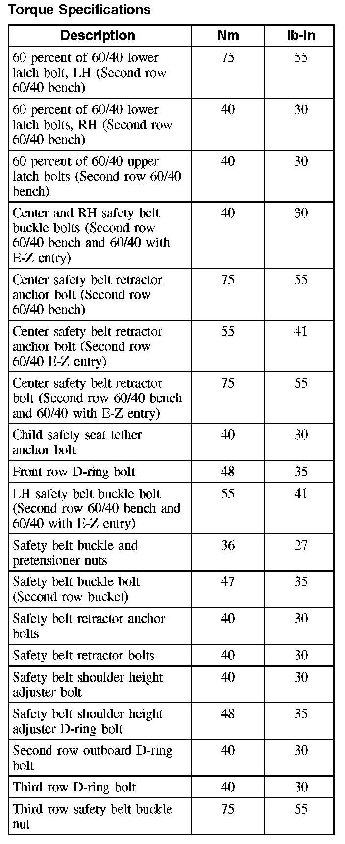 Torque Specifications: