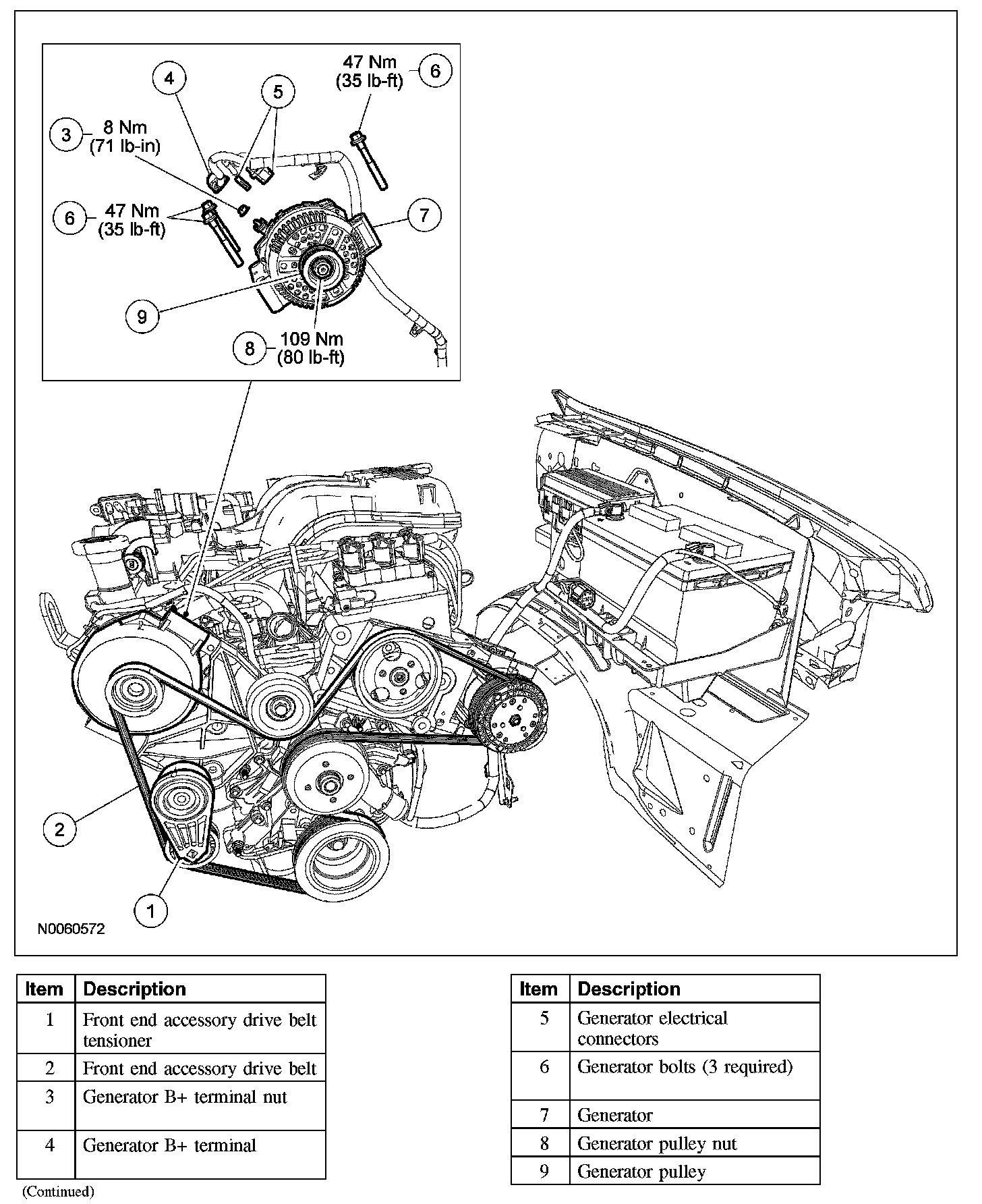 - To install, tighten to 47 Nm (35 lb-ft).
