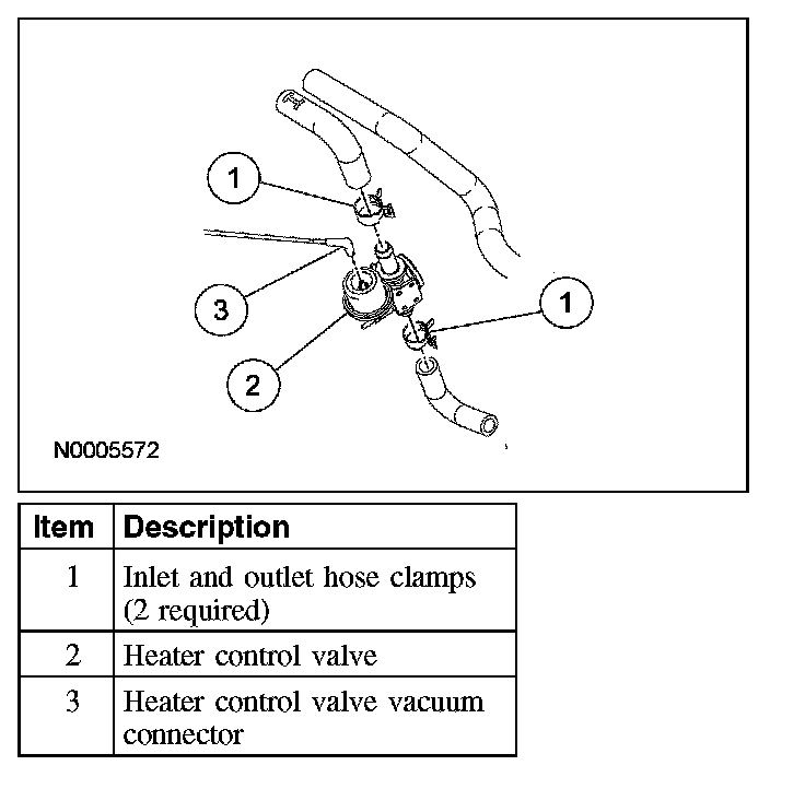 3. Disconnect the 2 inlet and outlet heater hose clamps.