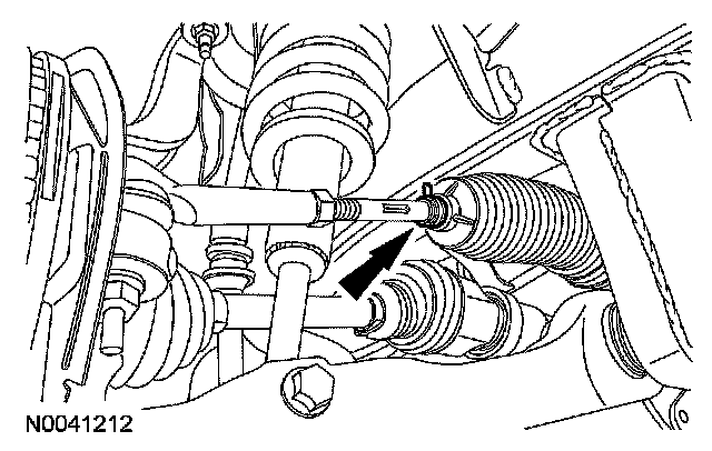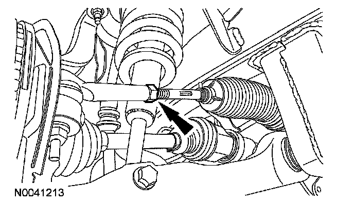 6. CAUTION: Make sure to hold the tie-rod end stationary while tightening the nut or damage to the steering gear bellows can occur.