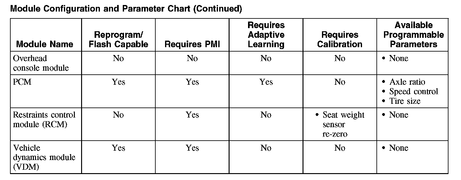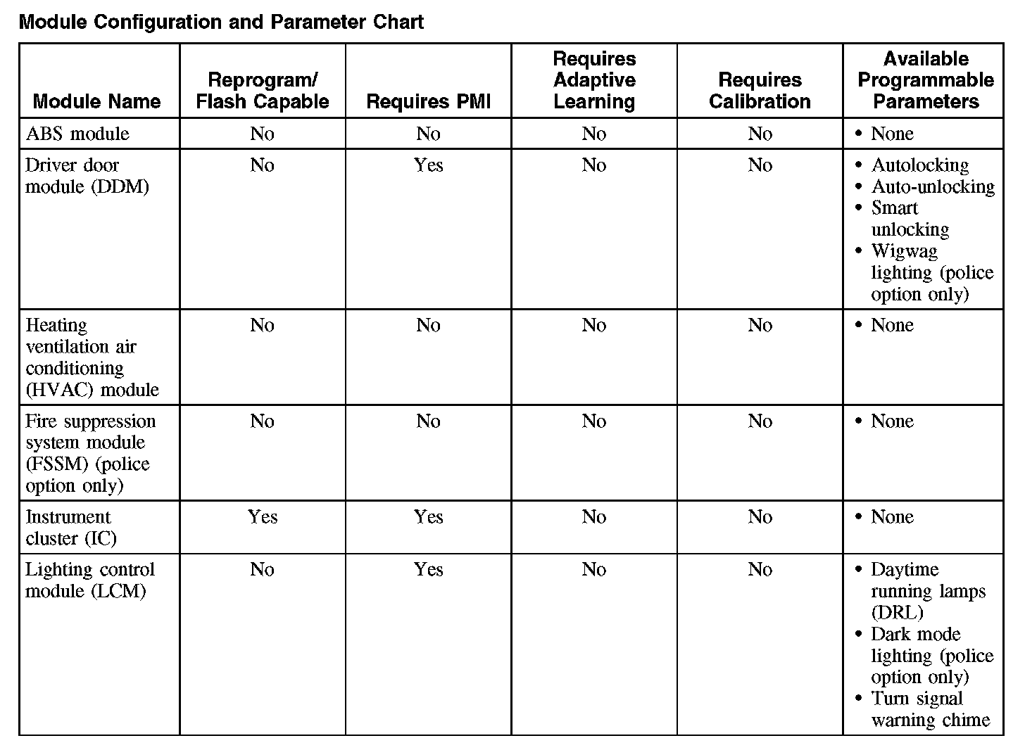 Programmable parameters are customer preference items that may be modified by the dealer via scan tool or in some cases modified by the customer following a procedure listed in the vehicle Owner's Literature. While many configuration options may exist for a module, only a few of these options are programmable parameters.