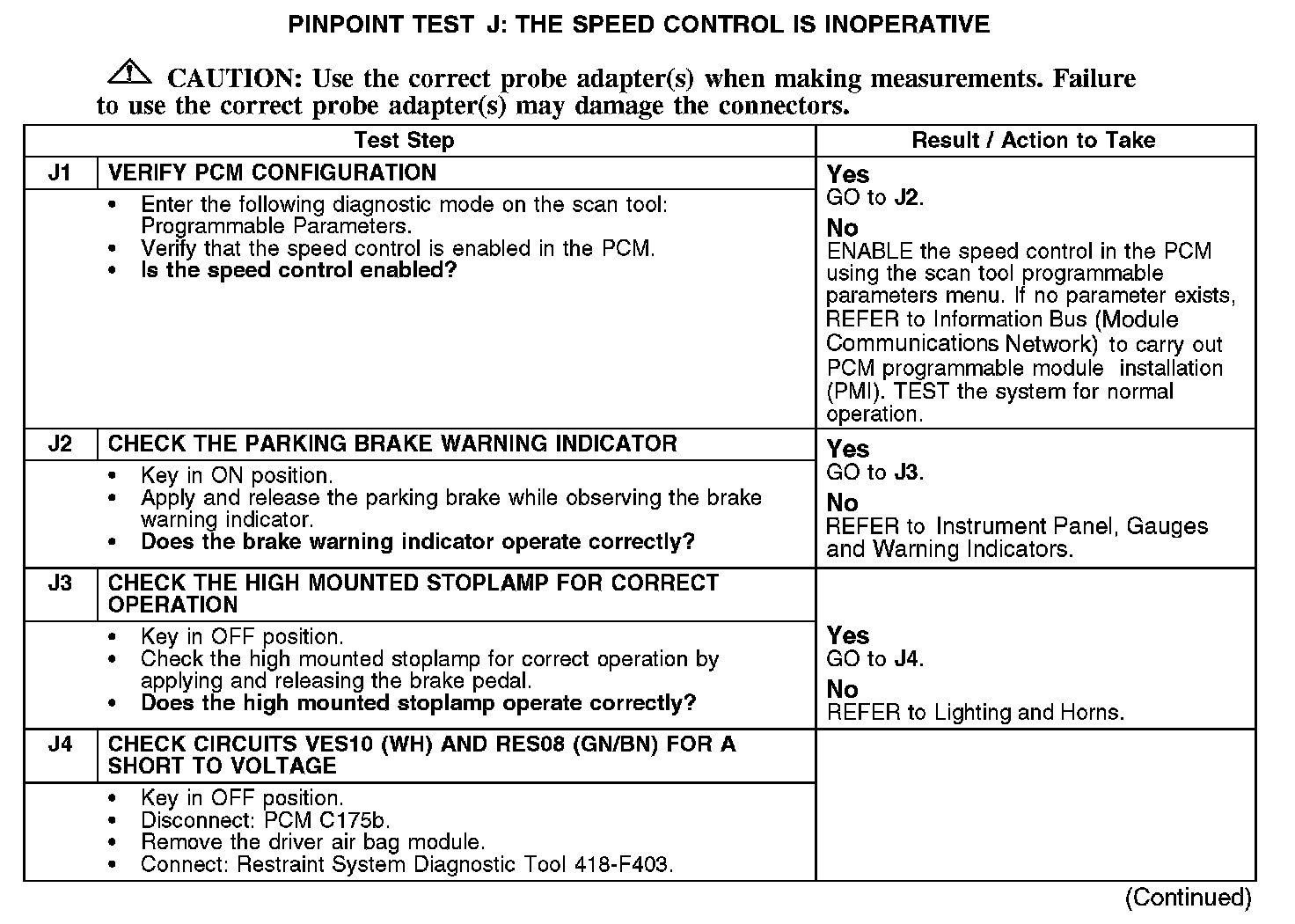 PINPOINT TEST J: THE SPEED CONTROL IS INOPERATIVENormal Operation