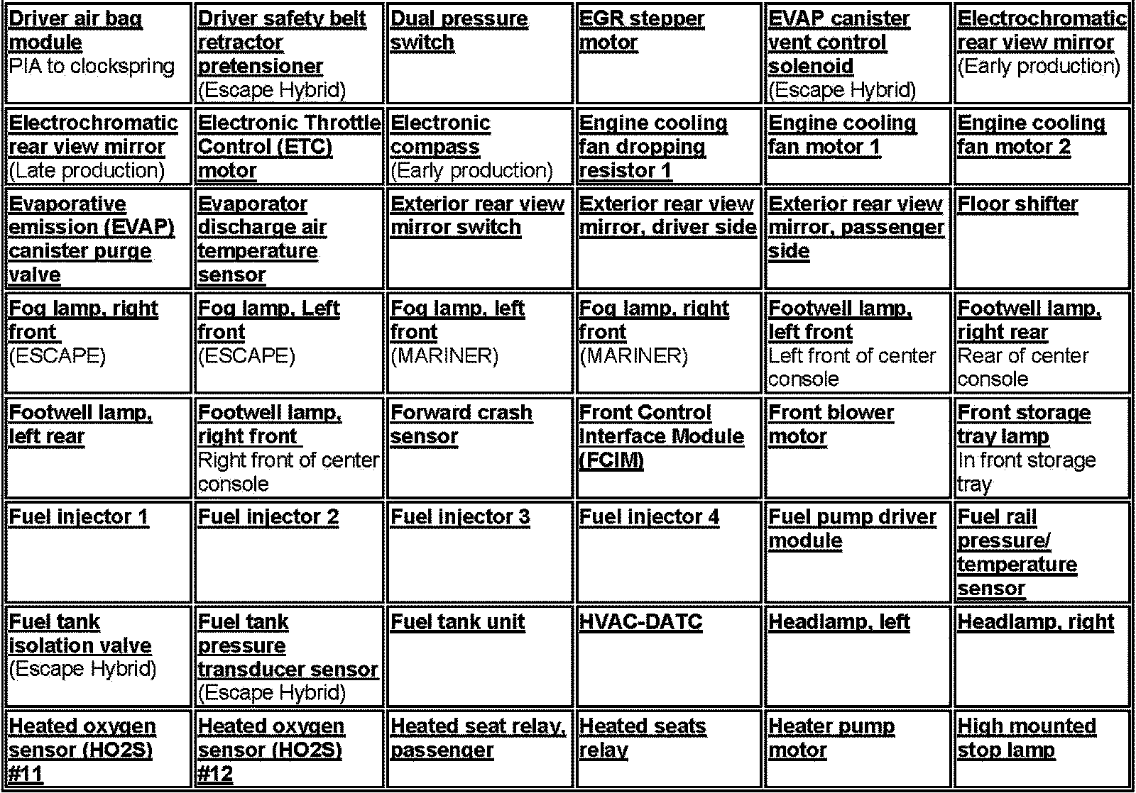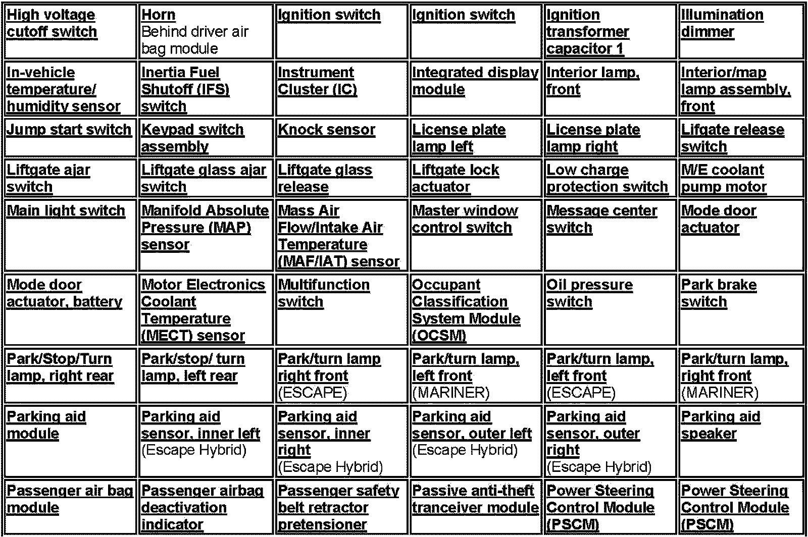 Mariner 2WD L4-2.3L VIN H Hybrid