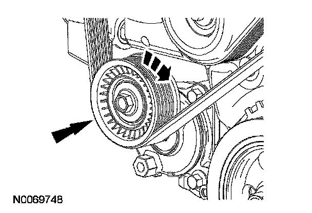 4. Release the tensioner and remove the drive belt from the A/C compressor pulley.