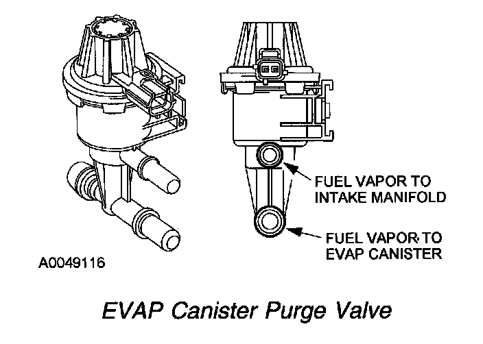 The EVAP canister purge valve is part of the enhanced EVAP system that is controlled by the PCM. This valve controls the flow of vapors (purging) from the EVAP canister to the intake manifold during various engine operating modes. The EVAP canister purge valve is a normally closed valve. The electronic EVAP canister purge valve controls the flow of vapors electronically by way of a solenoid, thereby eliminating the need for an electronic vacuum regulator and vacuum diaphragm. The PCM outputs a variable duty cycle signal (between 0% and 100%) and a variable current (between 0 mA and 1000 mA) to the solenoid on the EVAP canister purge valve.