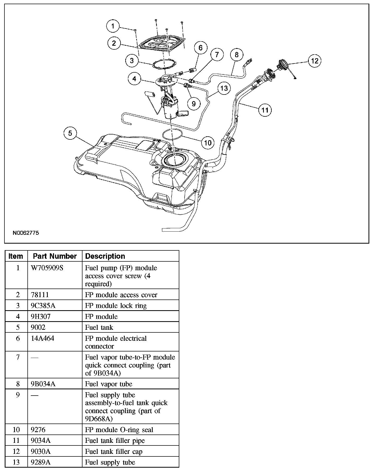 9. NOTE: Inspect the surfaces of the FP module flange and fuel tank seal contact surfaces. Do not polish or adjust the seal contact area of the FP module flange or fuel tank. Install a new FP module or fuel tank if the seal contact area is bent, scratched or corroded.