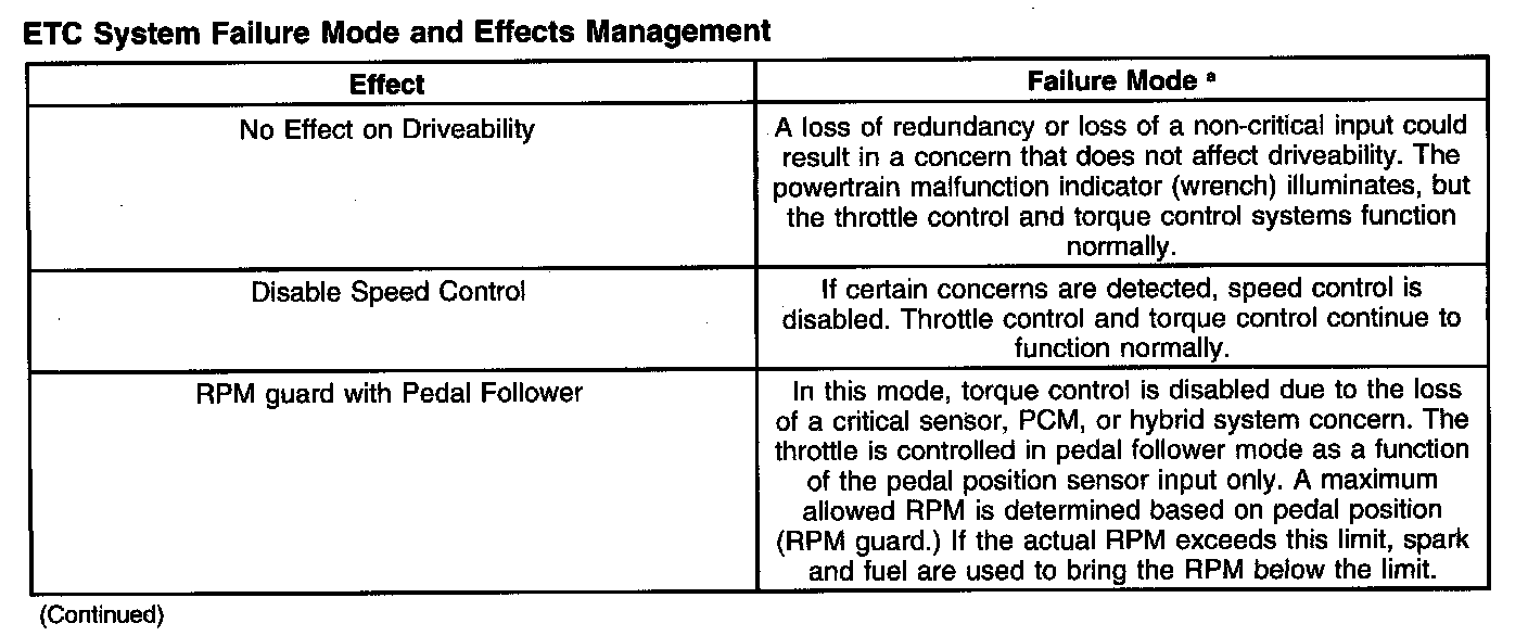 The ETC monitor system is distributed across 2 processors within the PCM: the main powertrain central processing unit (CPU) and a monitoring processor called an enhanced quizzer (E-Quizzer) processor. The primary monitoring function is carried out by the independent plausibility check (IPC) software, which resides on the main processor. It is responsible for determining the driver-demanded torque and comparing it to an estimate of the actual torque delivered. If the generated torque exceeds driver demand by a specified amount, the IPC takes the appropriate corrective action.