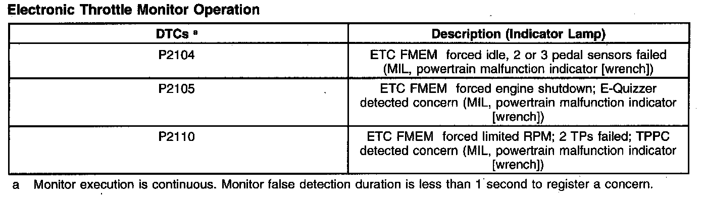 Electronic Throttle Monitor Operation: