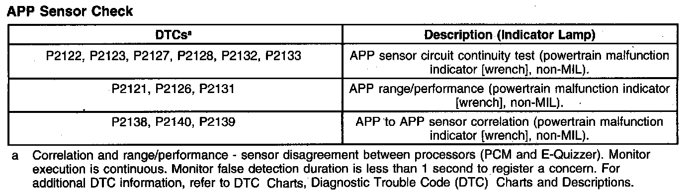 4. The 3 pedal position signals make sure the PCM receives a correct input even if a signal has a concern. The PCM determines if a signal is incorrect by calculating where it should be, inferred from the other signals. A value is substituted for an incorrect signal if 2 of the 3 signals are incorrect.