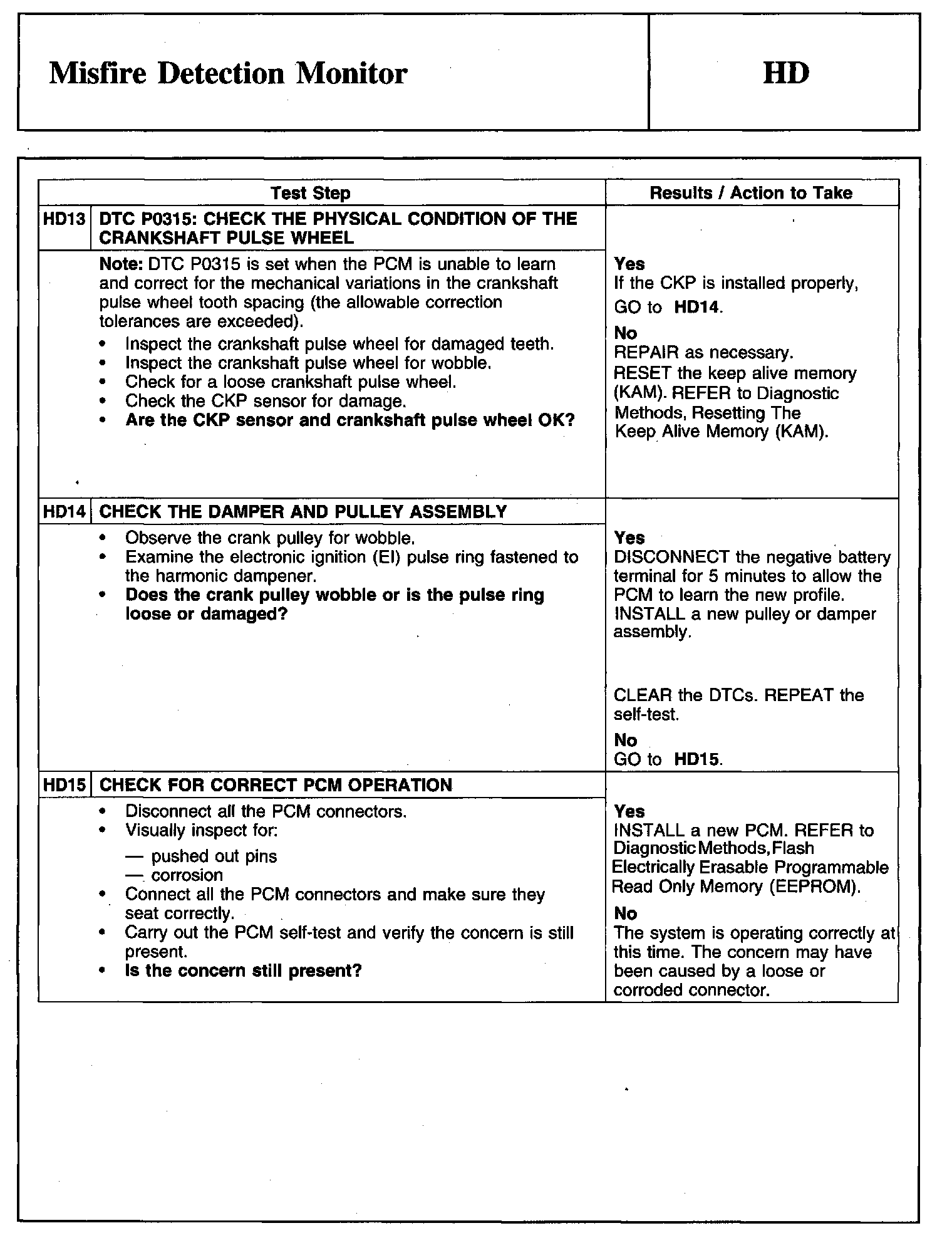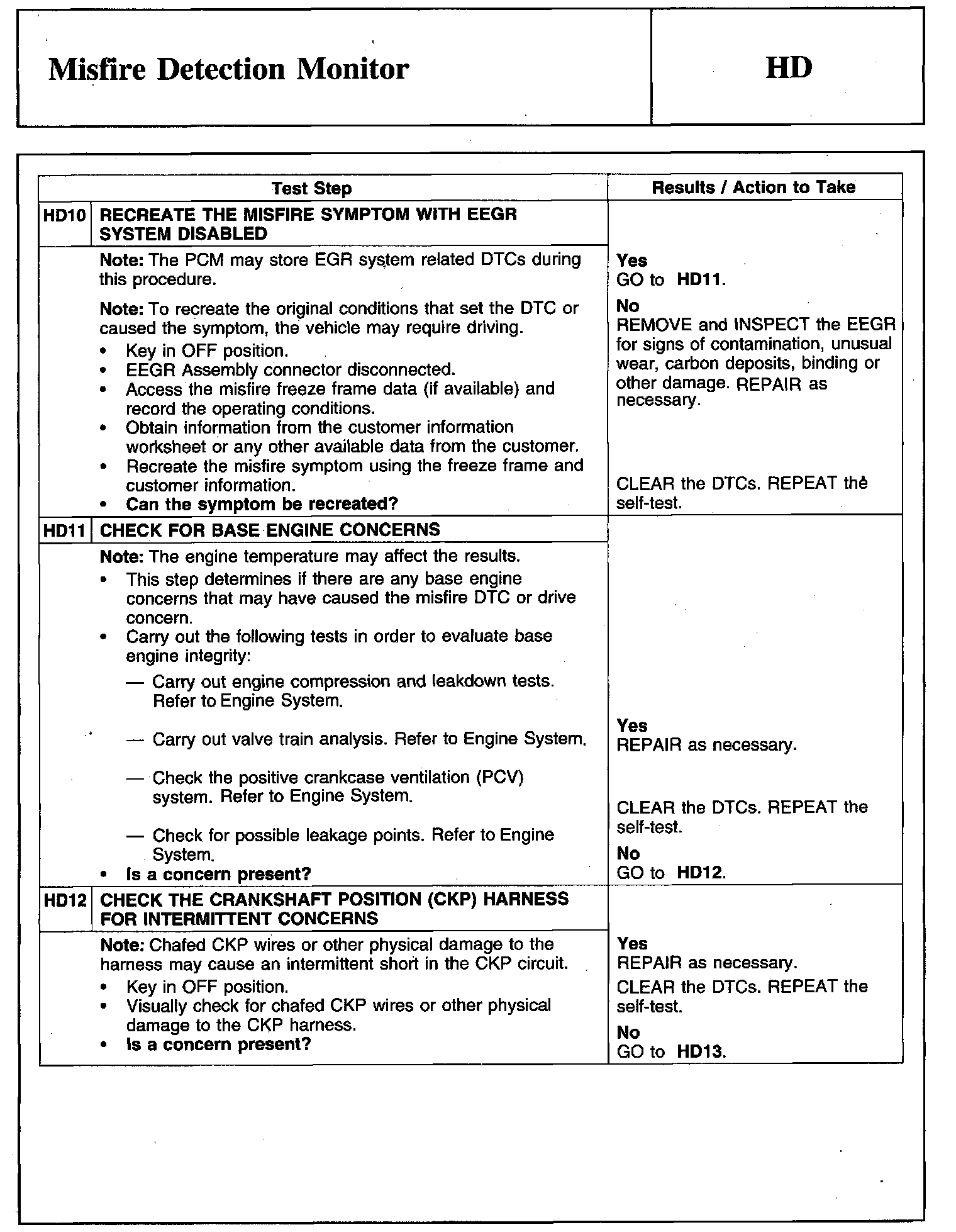 Tests HD: Misfire Detection Monitor
