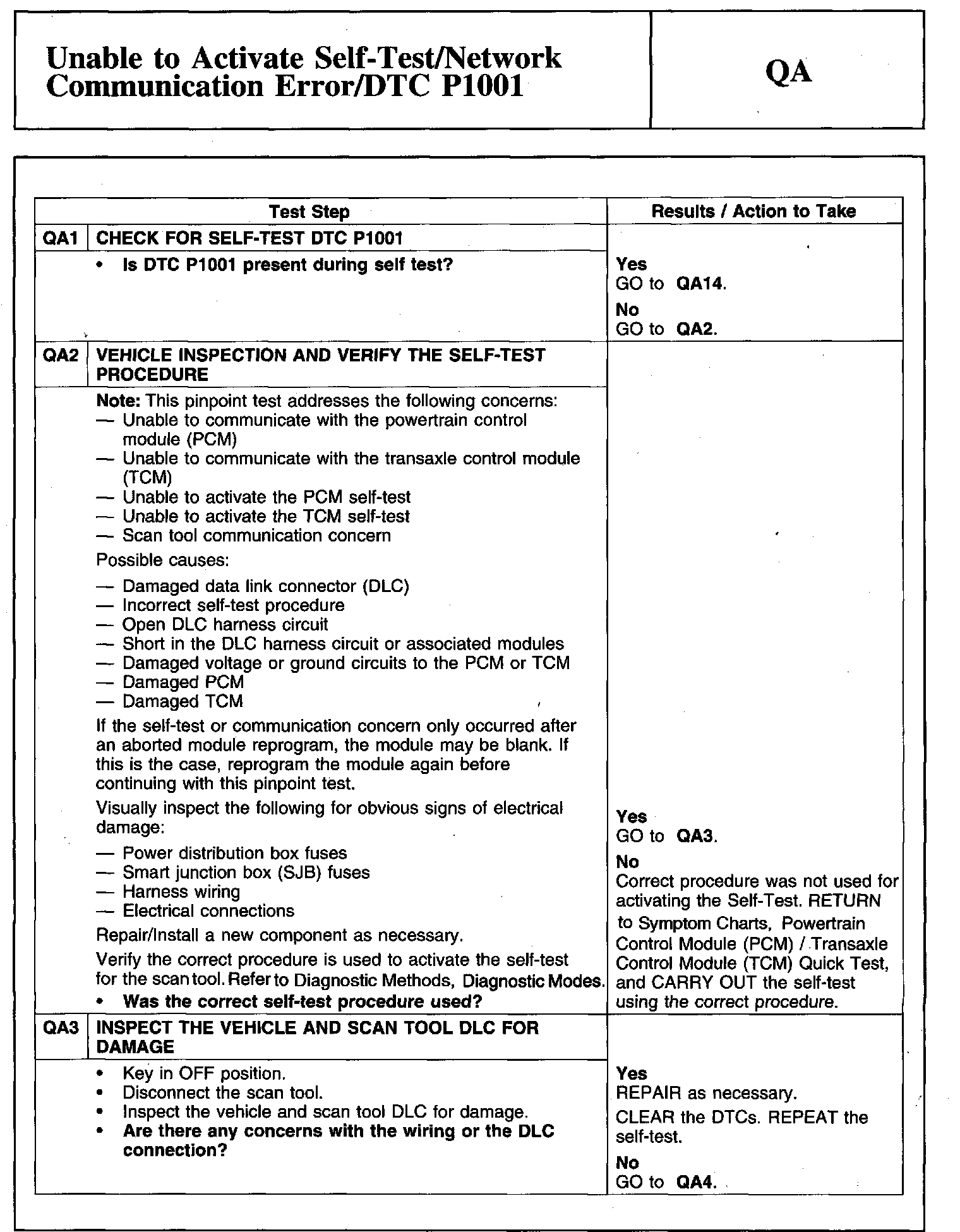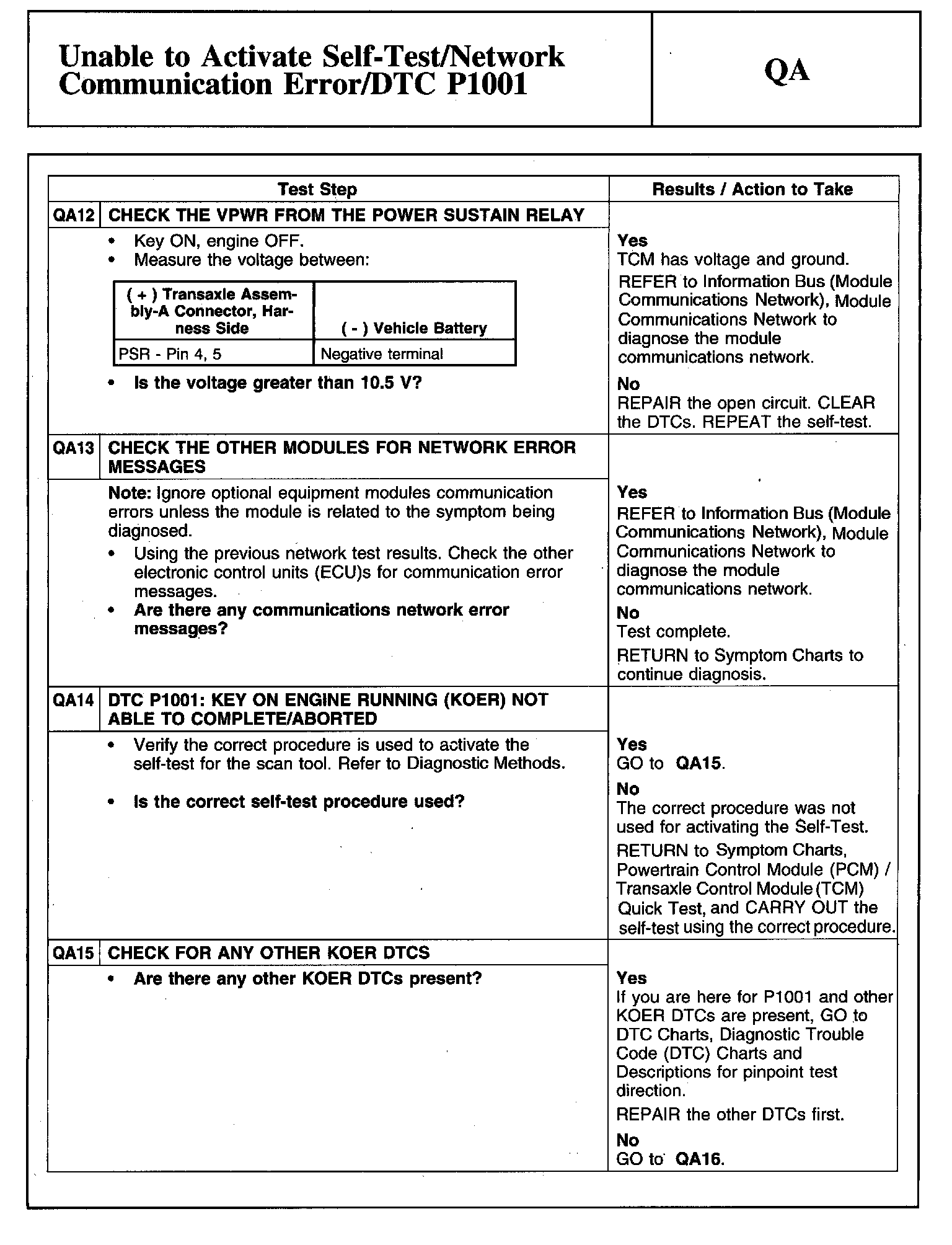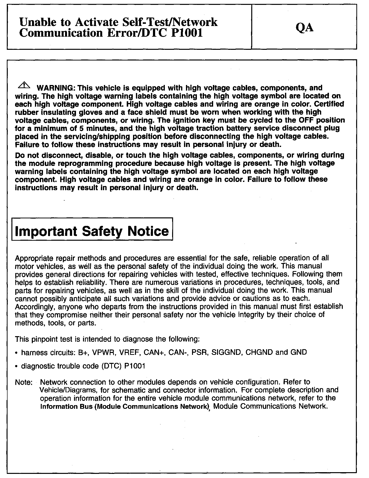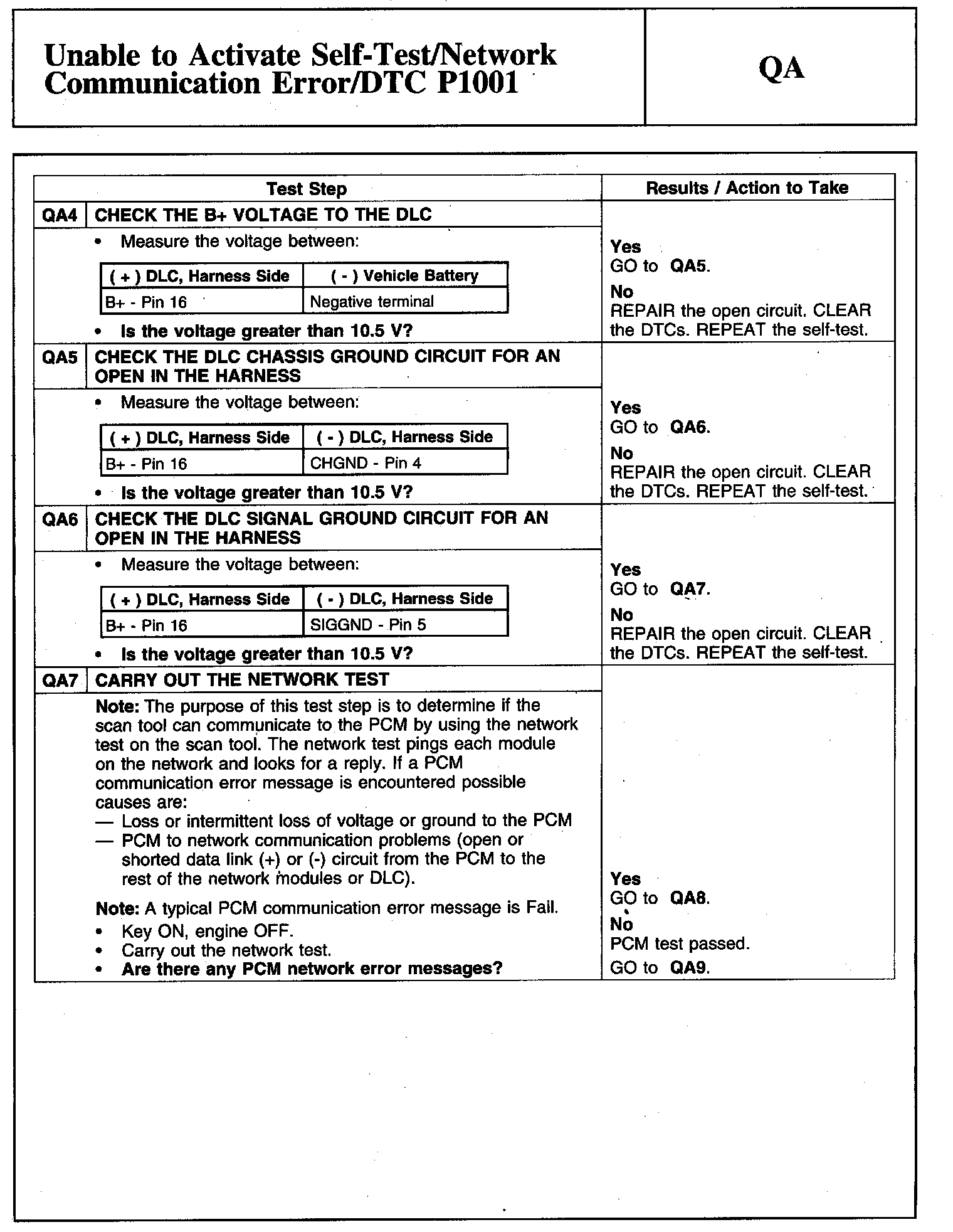 Tests QA: Unable To Activate Self-Test/Network Communication Error/DTC P1001