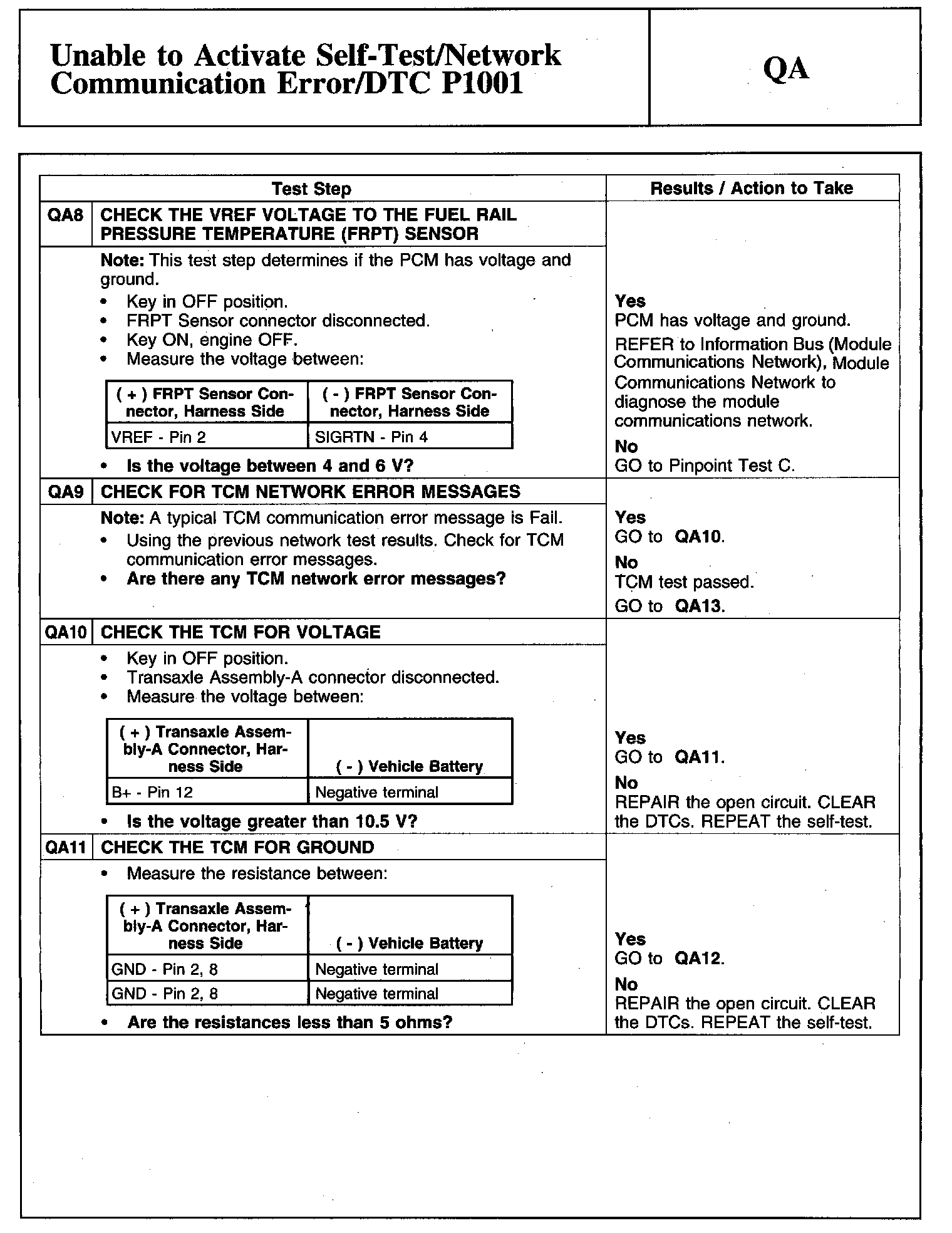 PINPOINT TEST QA: UNABLE TO ACTIVATE SELF-TEST/NETWORK COMMUNICATION ERROR/DTC P1001