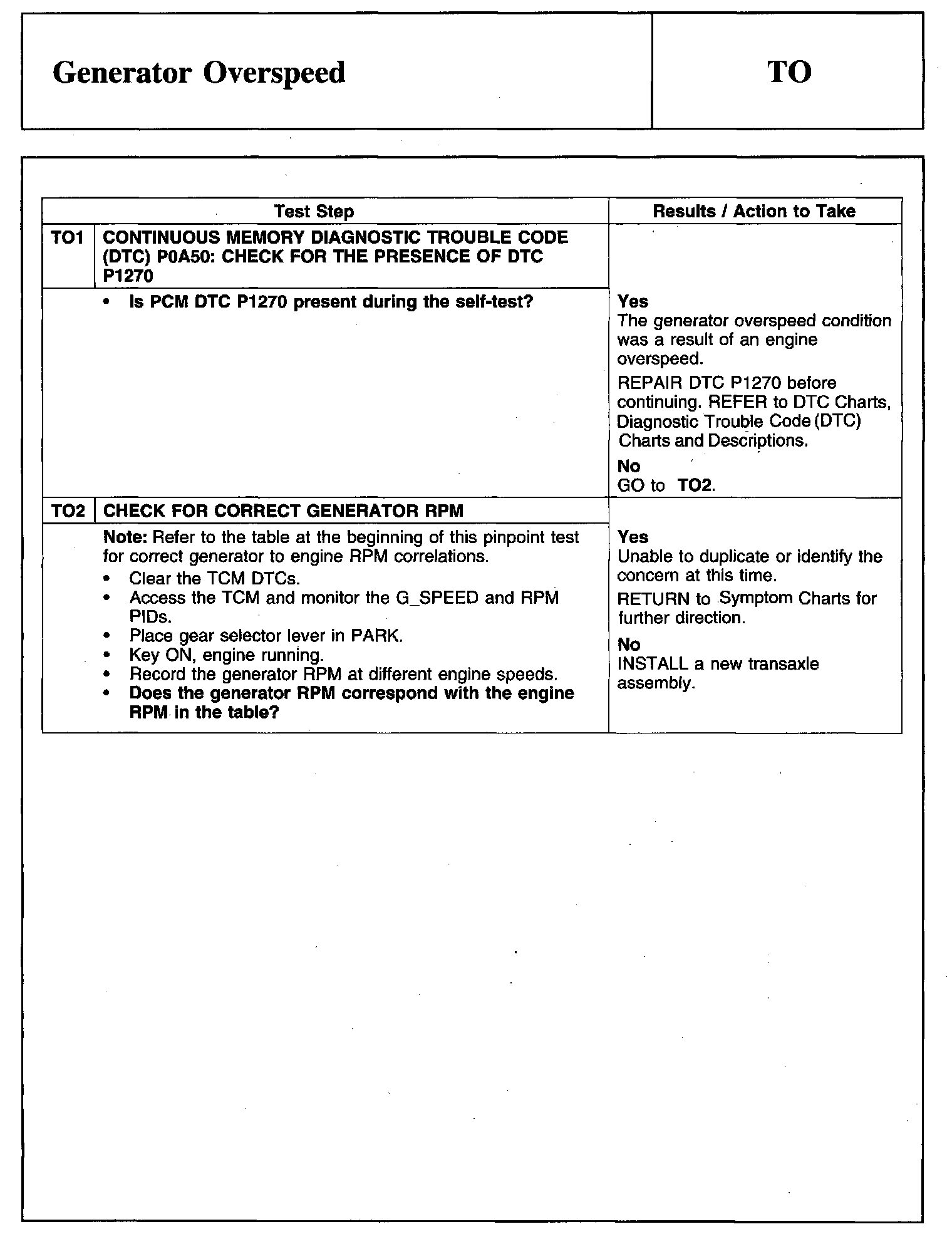 PINPOINT TEST TO: GENERATOR OVERSPEED