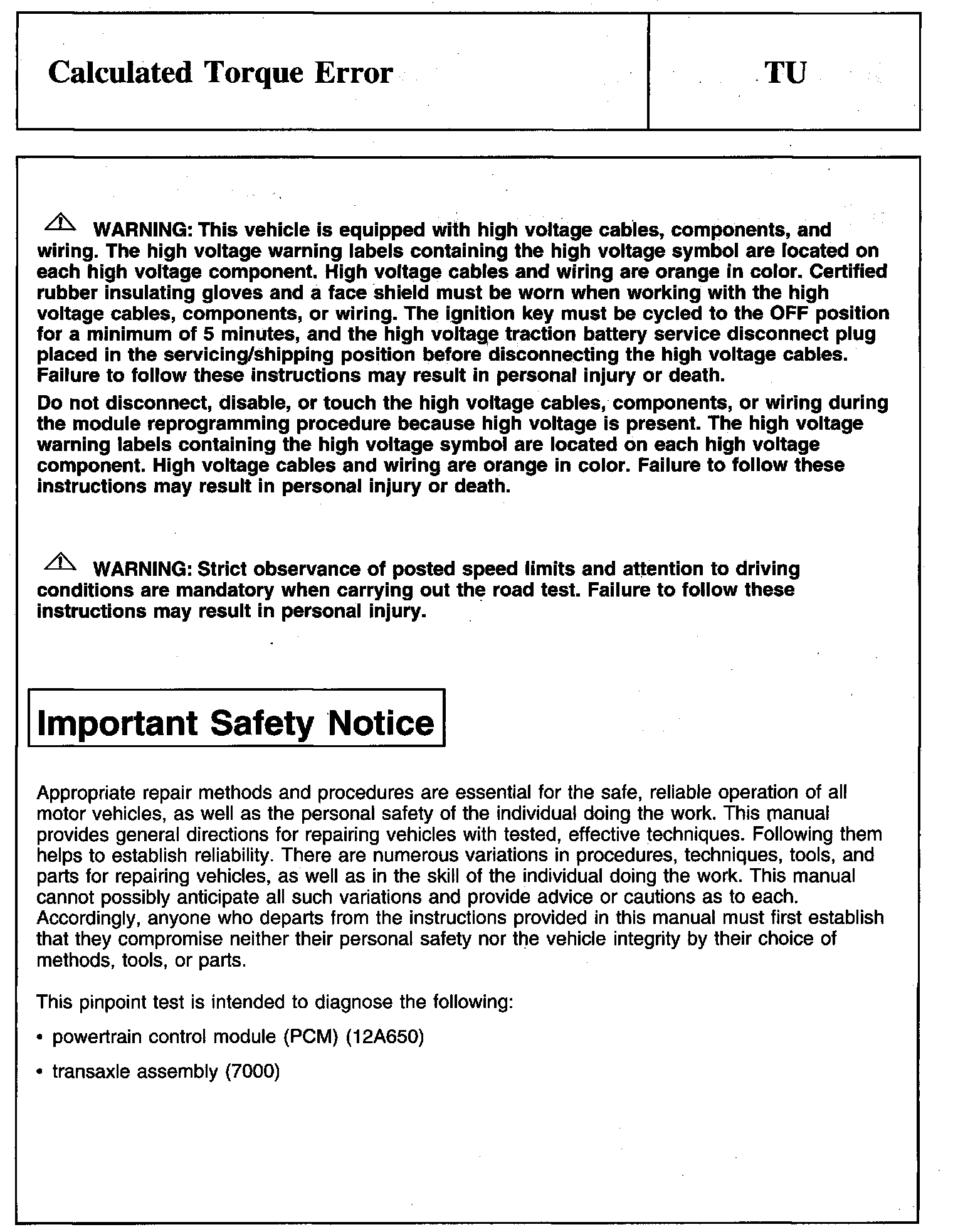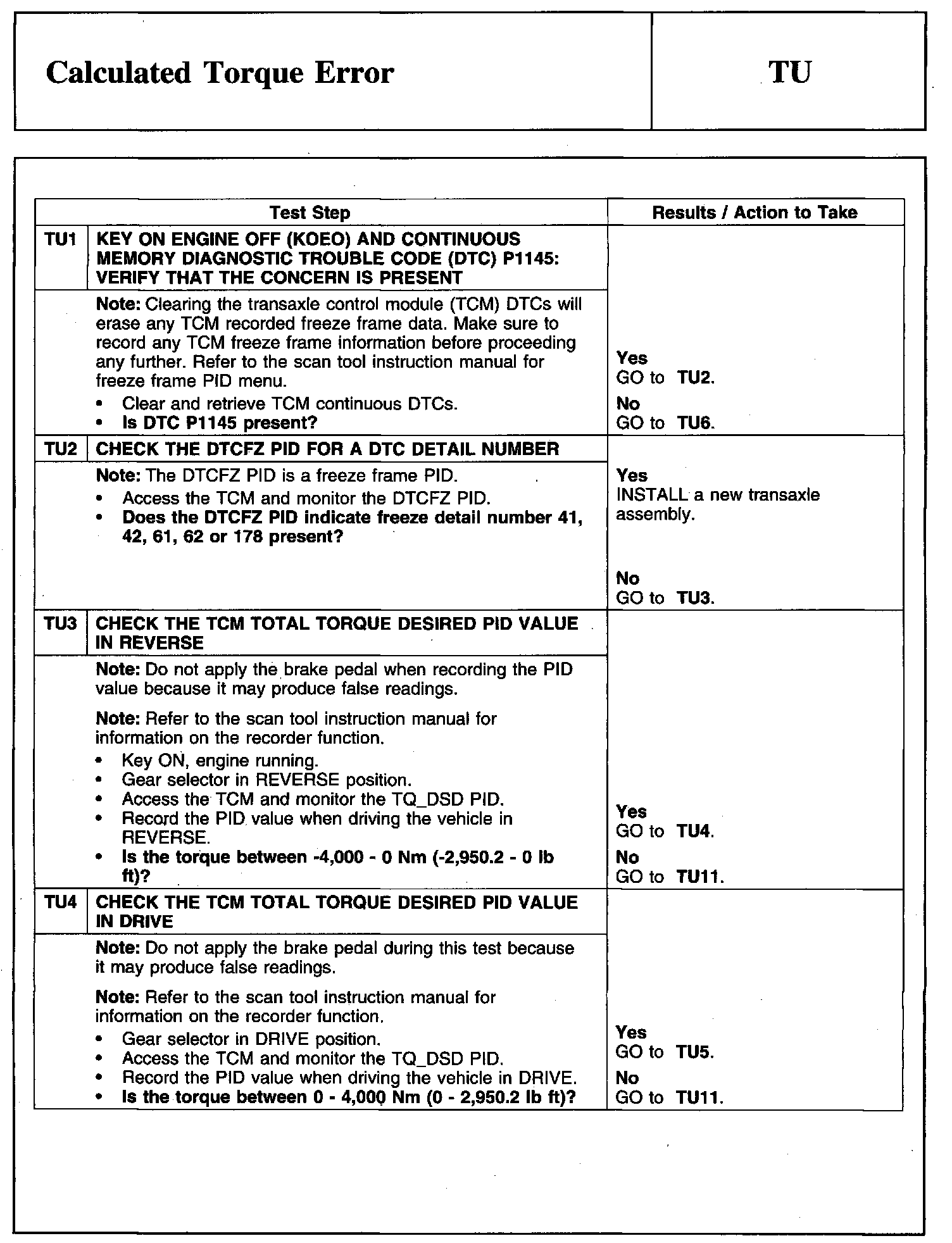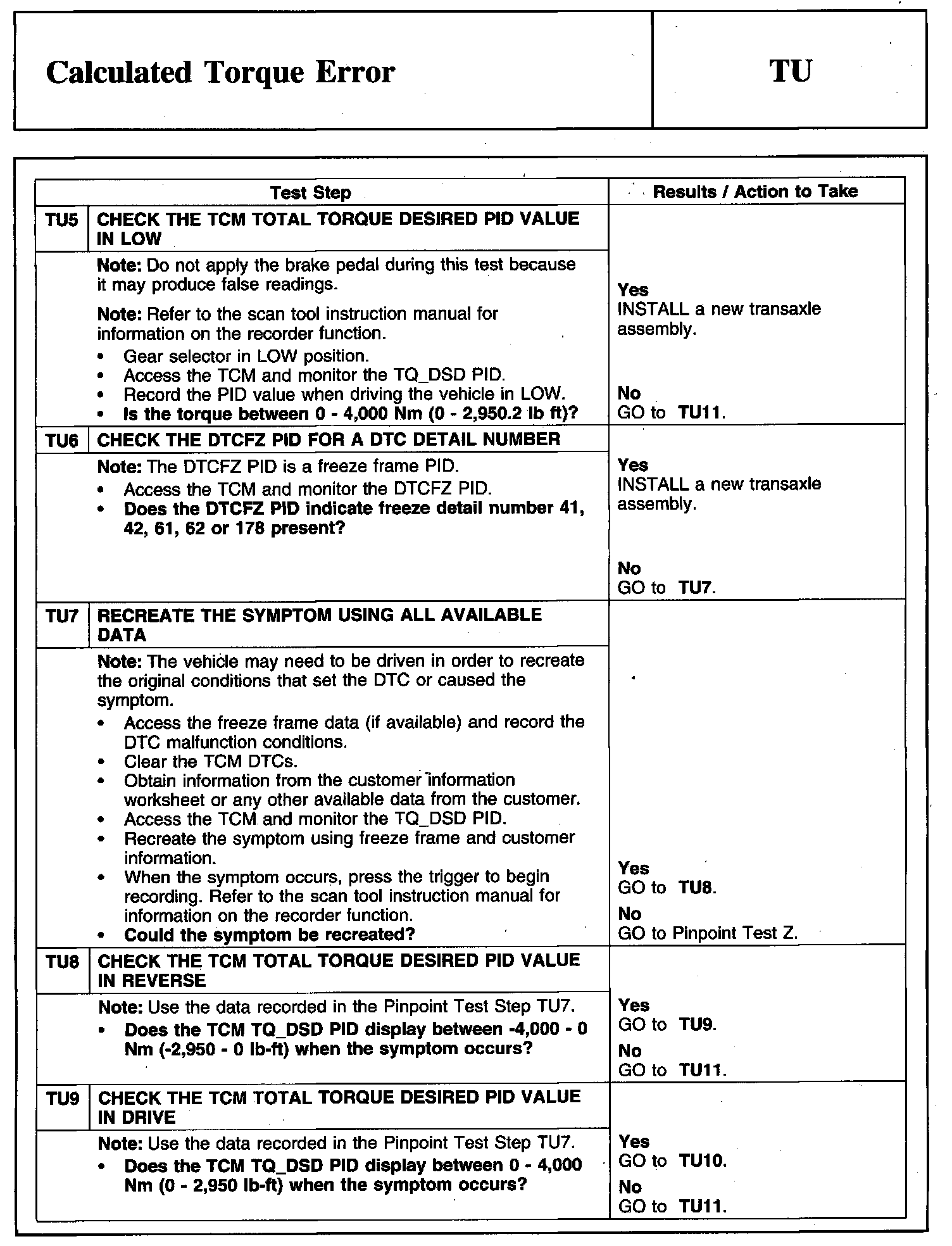 PINPOINT TEST TU: CALCULATED TORQUE ERROR