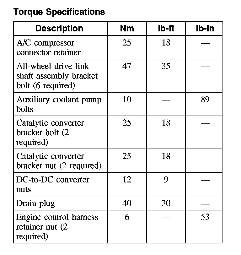 Torque Specifications (Part 1):