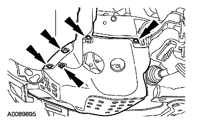 3. Remove the pin-type retainer, 6 bolts and the LH splash shield.