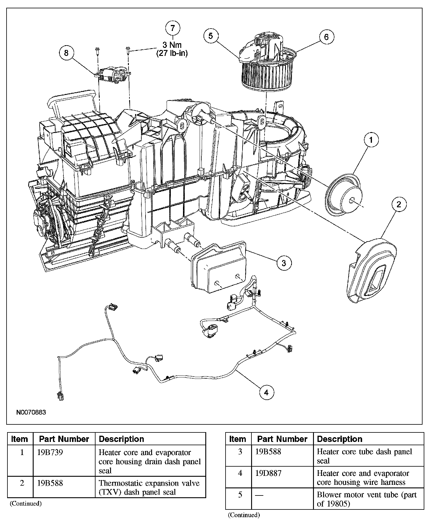 17. Remove the heater core and evaporator core housing drain dash panel seal.