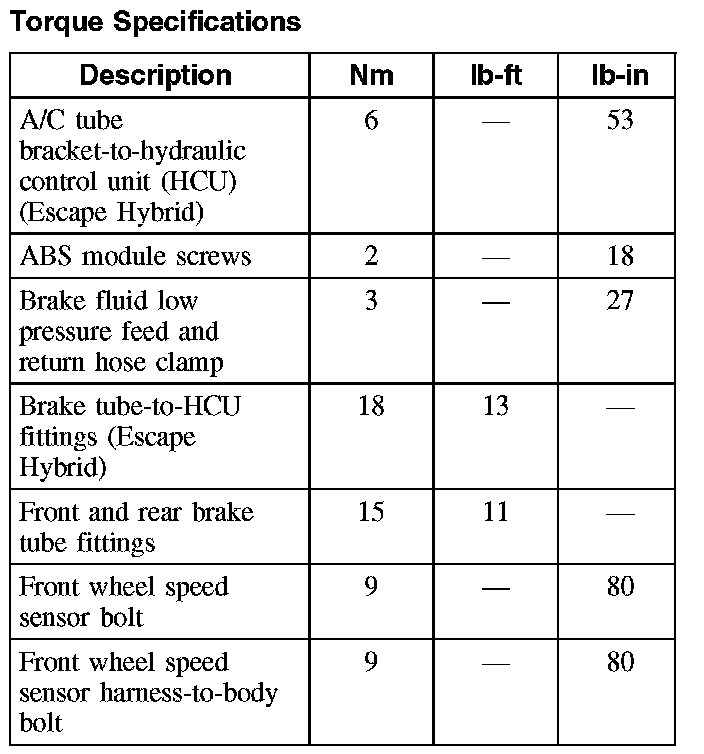 Torque Specifications (Part 1):