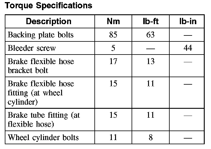 Torque Specifications: