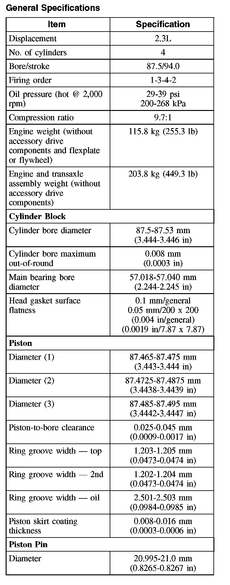 General Specifications