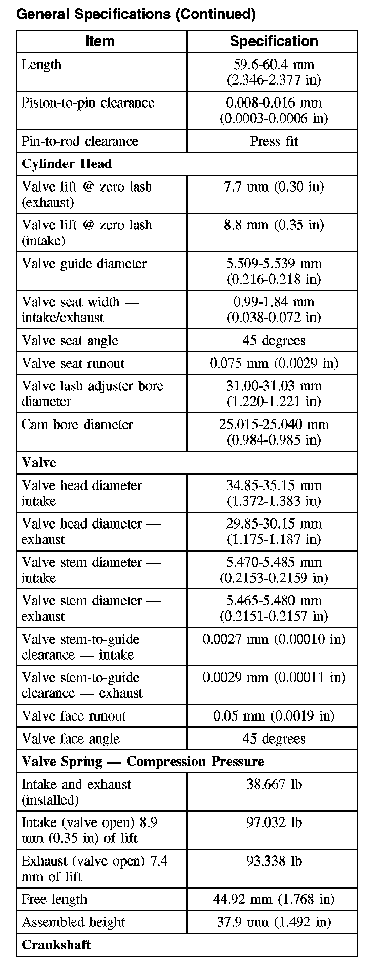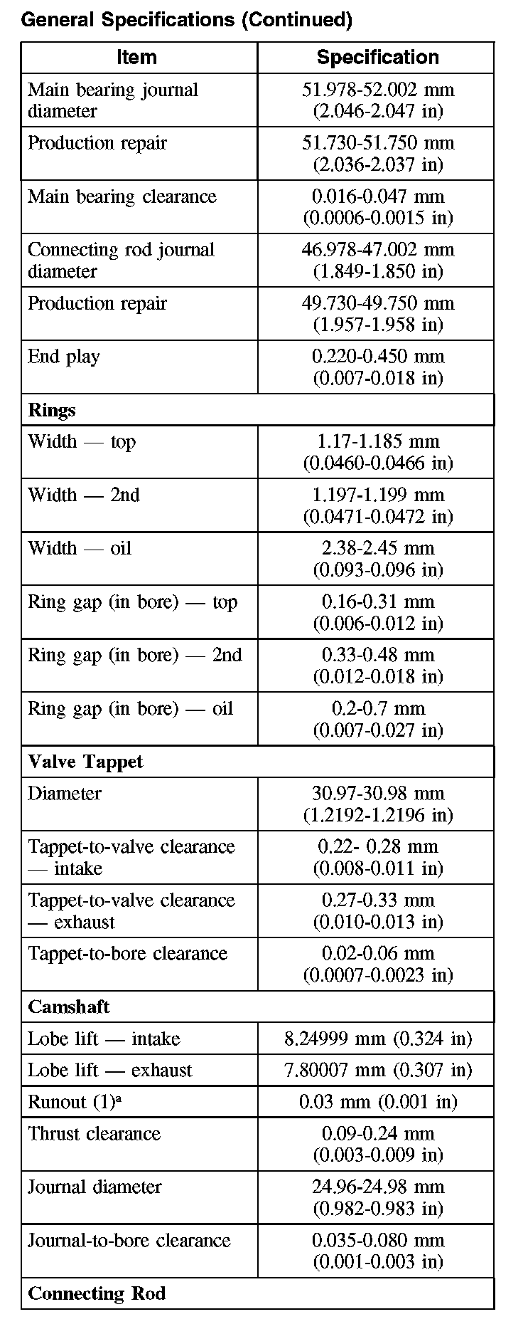 General Specifications (Part 2):