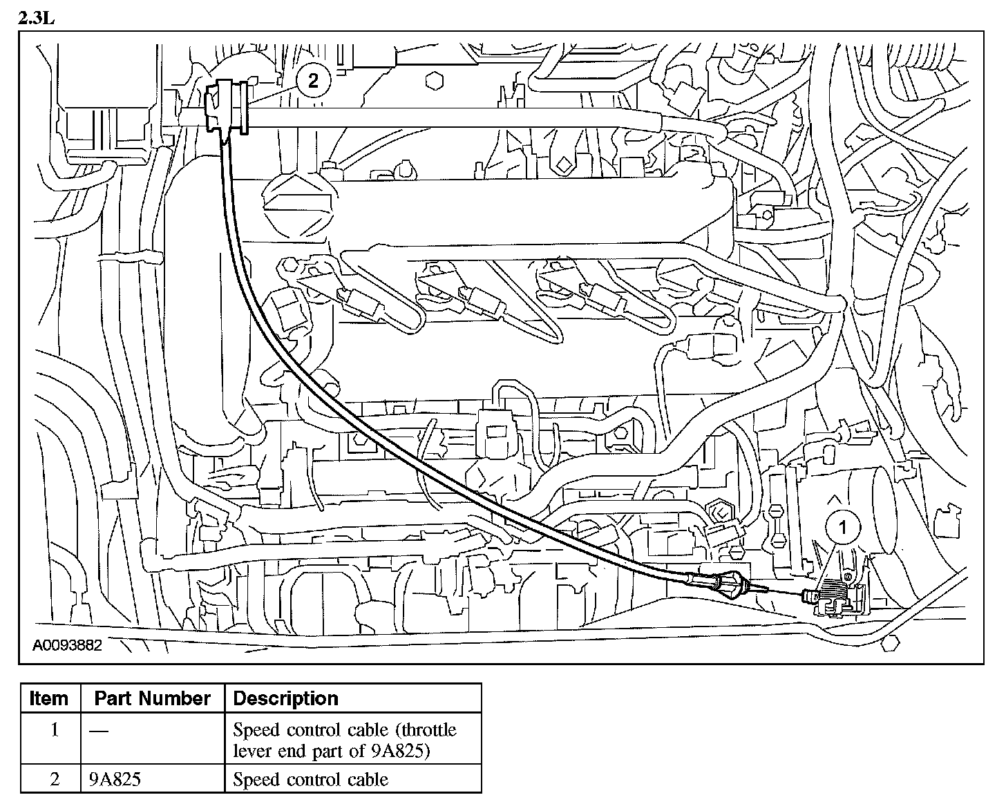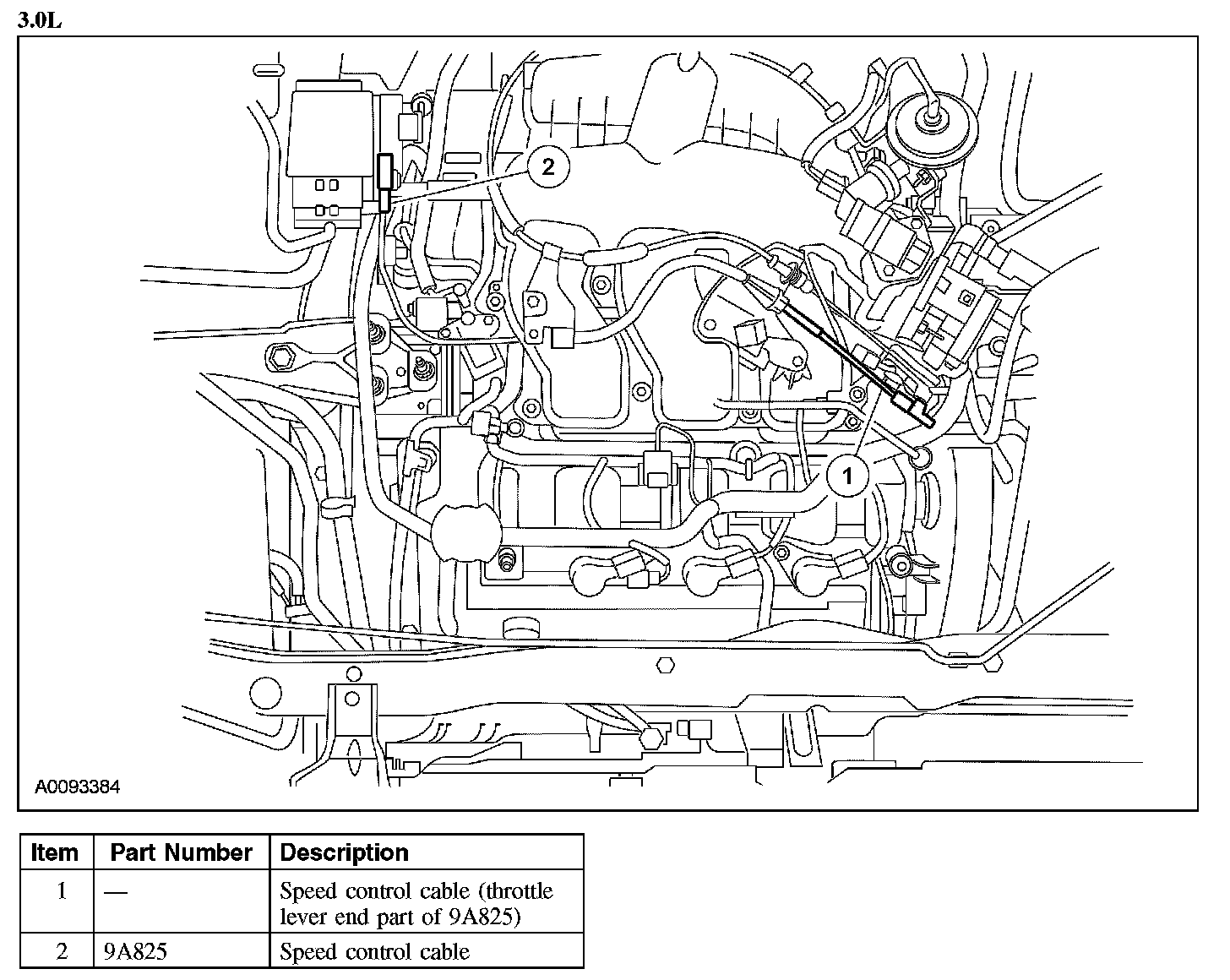 2. Disconnect the speed control cable from the throttle lever and accelerator cable bracket.